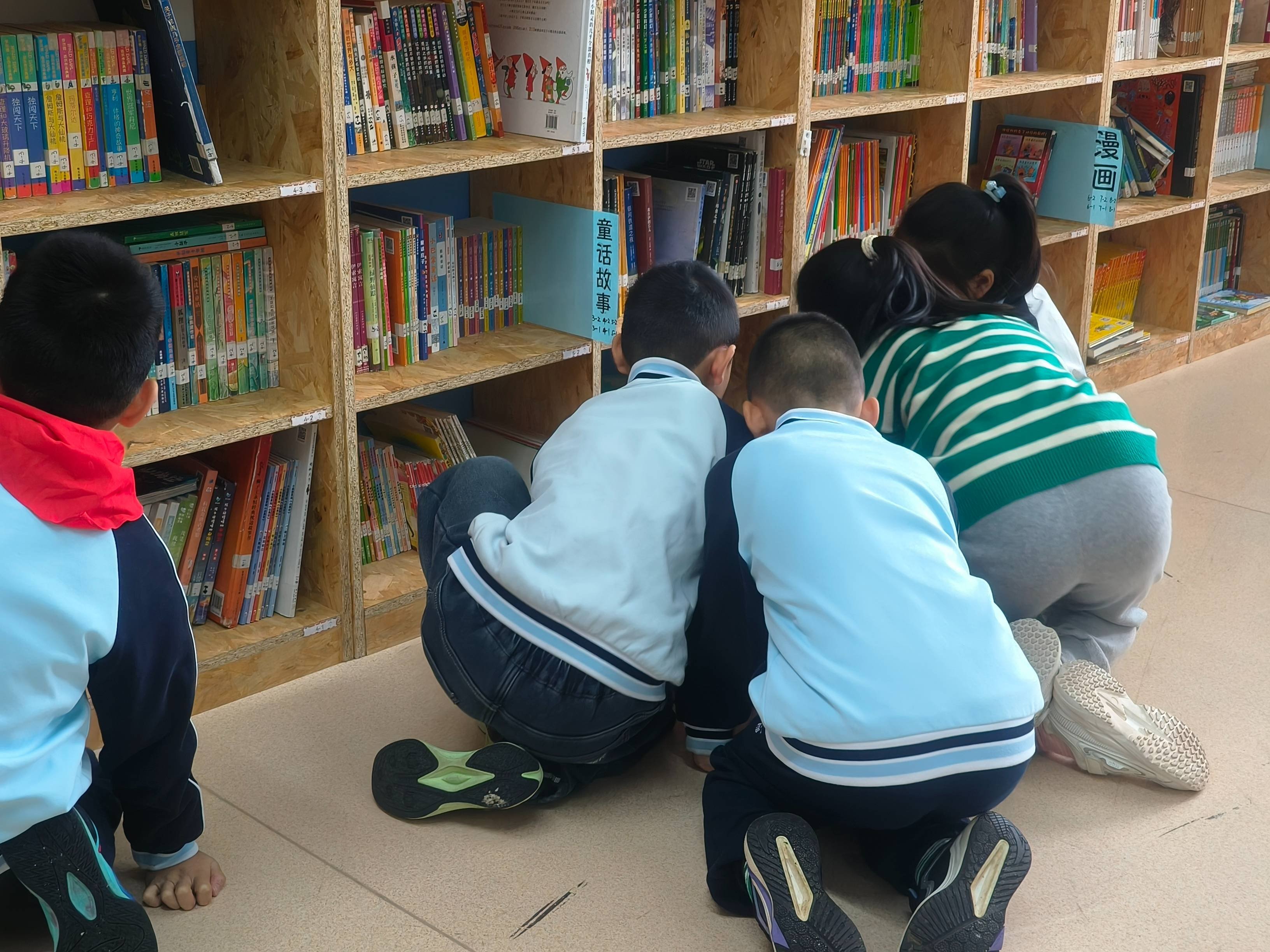 这个学期还有个特点,就是二年级的同学活跃度很高,可能是因为老师不让借书,同学们又很想看书,所以一下课就涌入图书馆,常常把书扔的飞起,偶而还打个架,图书馆显得有些乱哄哄。从办卡抽身出来后我不时的在馆里游走,维护秩序,情况虽有所好转,但乱扔书现象还是严重,后续需要多花精力去改善。
