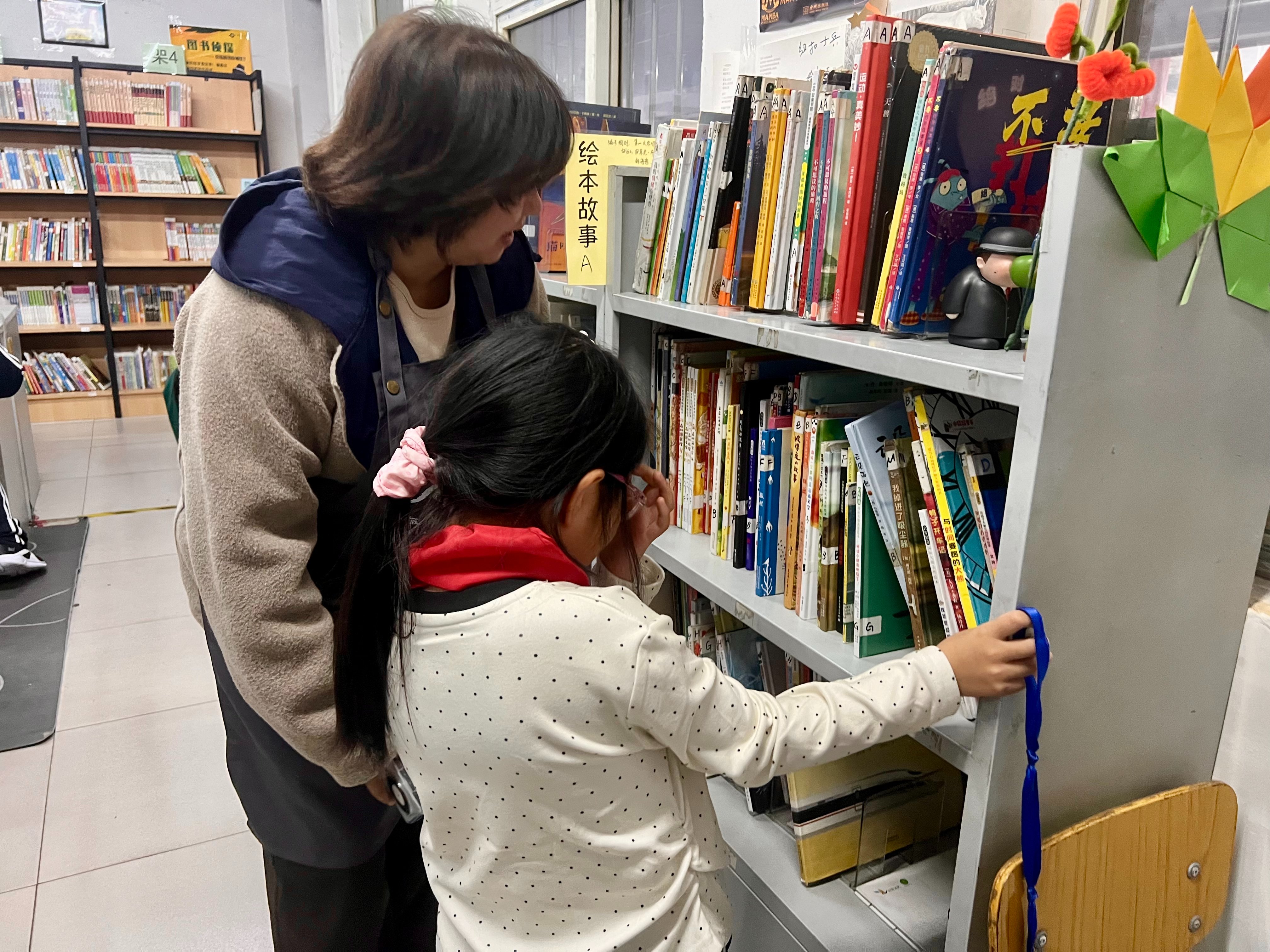 主要负责小朋友书籍借还,帮小朋友找书,对比自己上一次来(九月二十九日),今天借书的小朋友不算多。