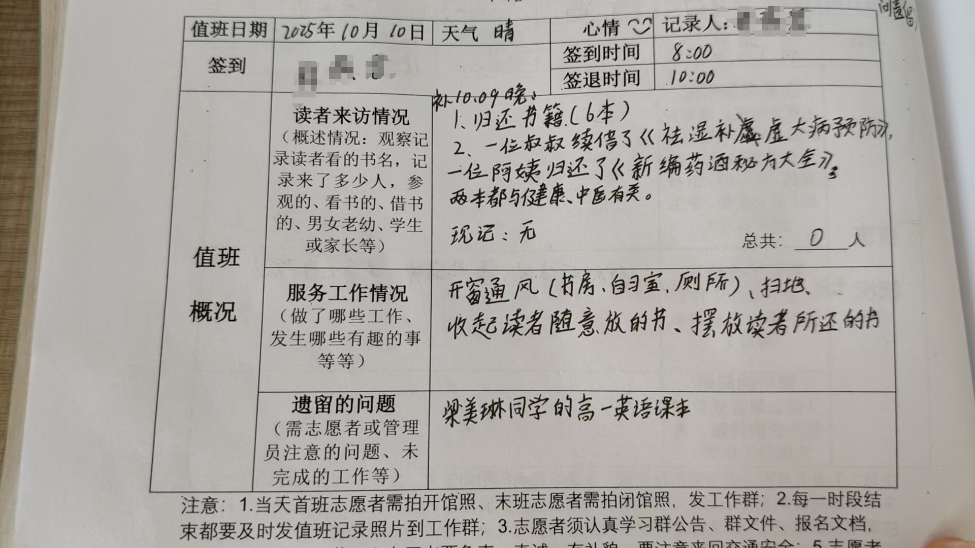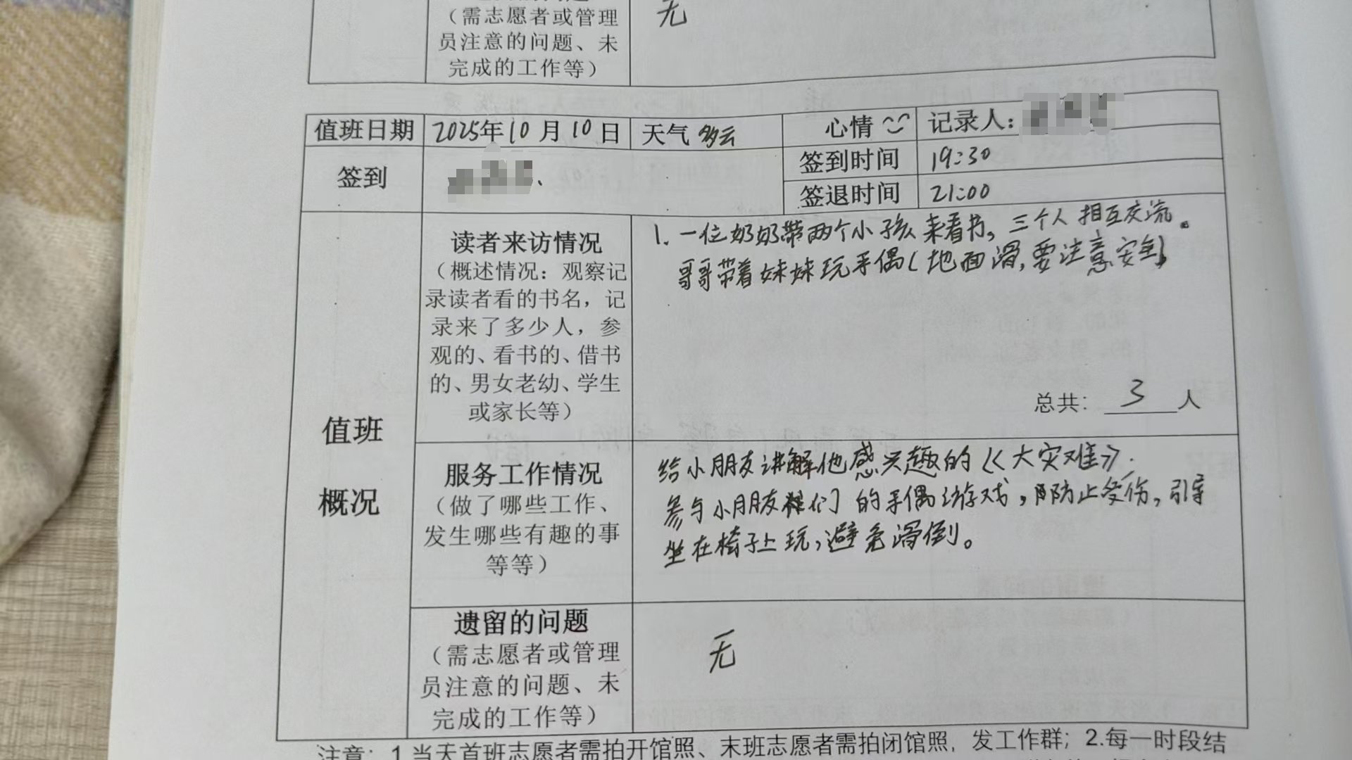 今年金秋十月依然炎热,我和赵姐如约而至来做志愿者。人数不多,有个别孩子打闹,我们也及时提醒。那些弄丢书的孩子们,也拿来的家里闲置的书籍来进行赔偿,做到有契约精神。但是更希望孩子们能爱护我们的书籍,守护我们的阅读世界。
