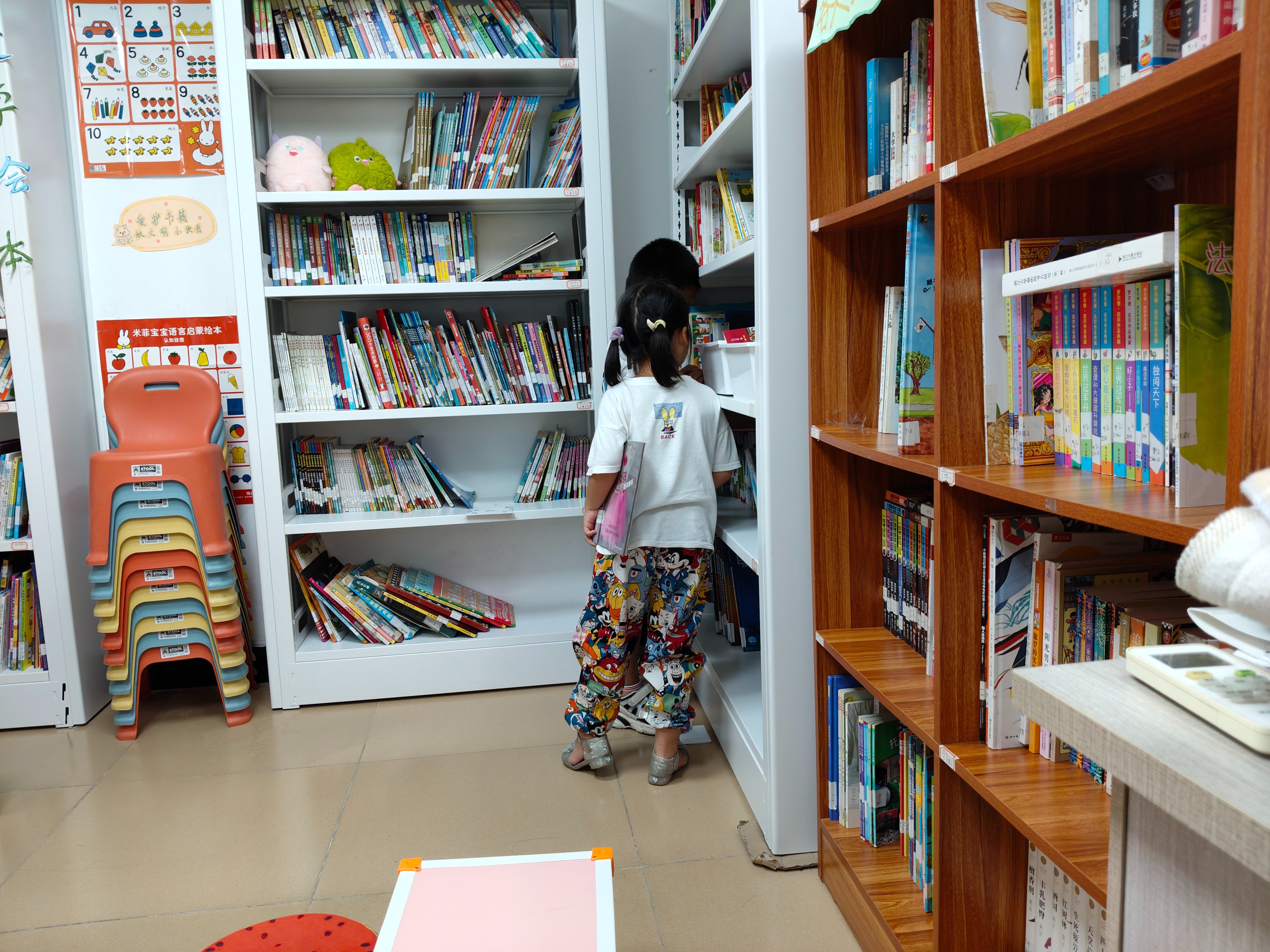 有些小朋友来问有没有恐怖一点的书,但我对图书馆这类书还不够熟悉,没办法给他们推荐。就自己留意的话,小朋友们大多喜欢看有图画的书,全是字的借的不多,有个熟悉的小朋友就跟我说她喜欢看薄一点,有图画的书。
