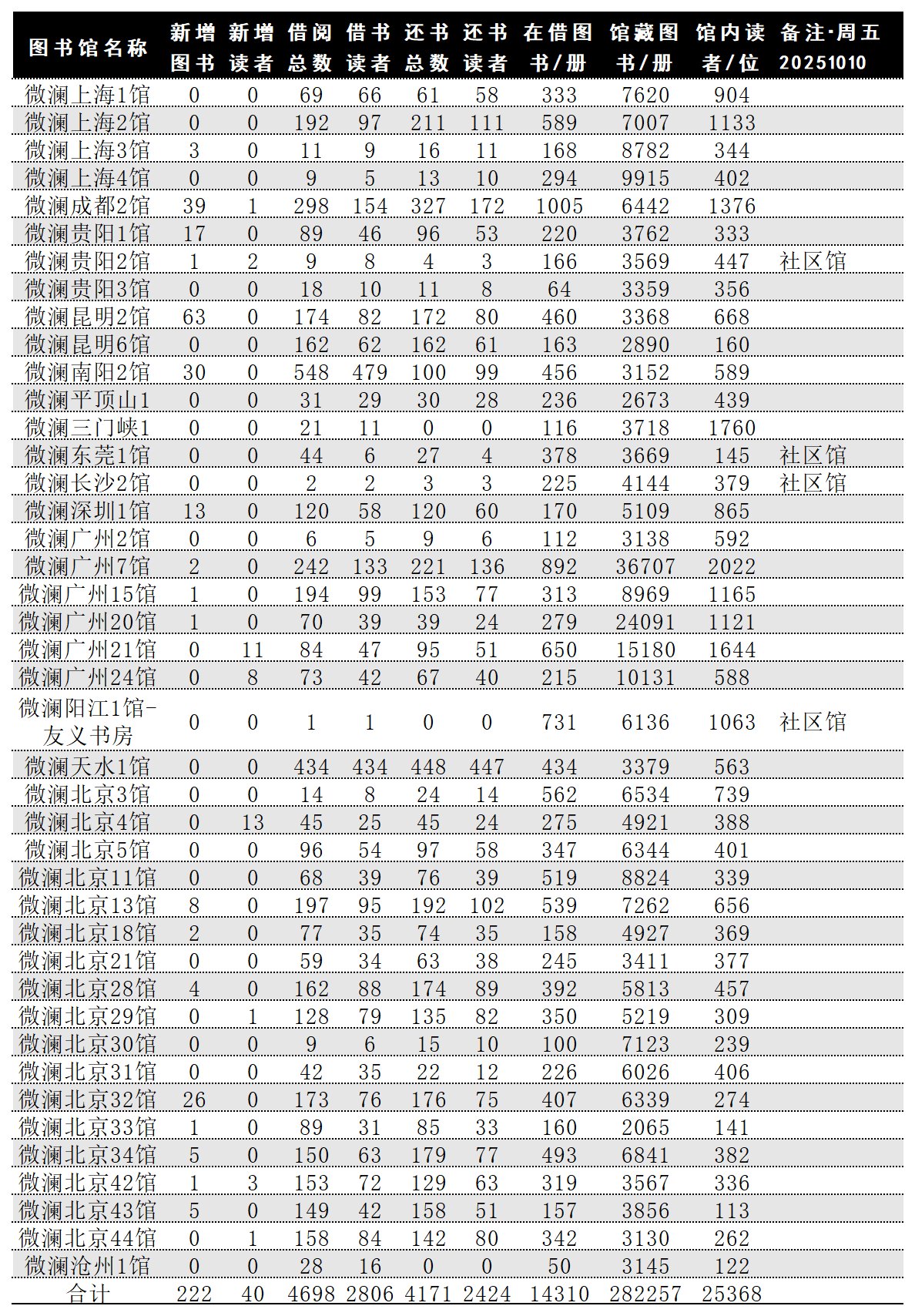各馆数据日报20251010/周五: