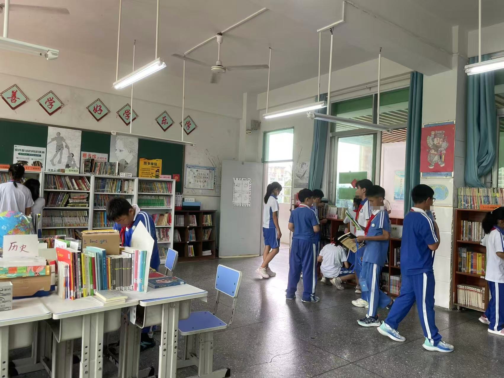 下午课间高年级的同学很喜欢来馆里……