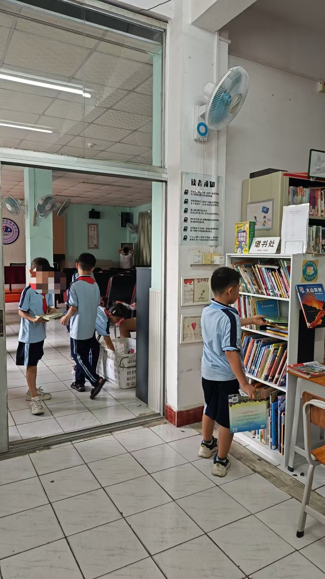 上午第三节课和第四节课是六年级和四年级二班的阅读课。虽然毅桦叮嘱说,可以先到教室推荐书籍并扫完需要归还的书籍,然后再进馆阅读,但我和轩轩商量后,决定这两个班还是按照原先路数走,主要是考虑到