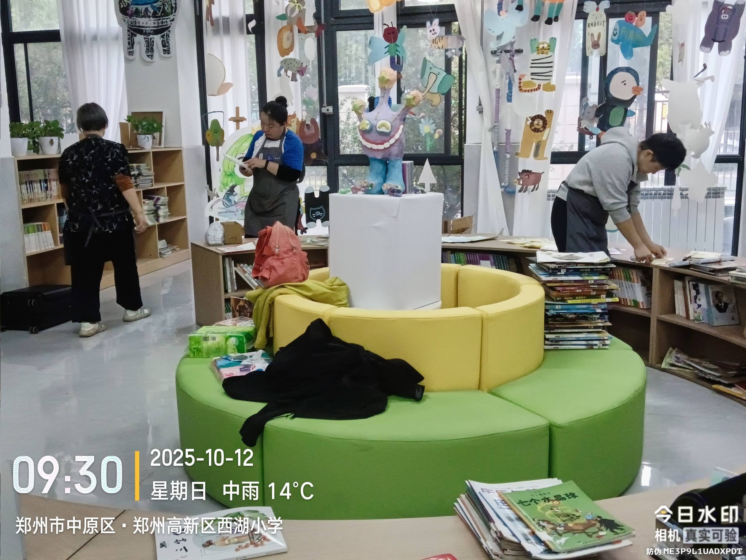 还有4位北京的微澜家人,郑州5馆一起盘点整备。毅桦老师分工明确,一会儿功夫所有原来图书分类上架完成;再有校方7位实习老师的帮忙,最后保质保量完成整备,并又收获了7新人加入微澜。