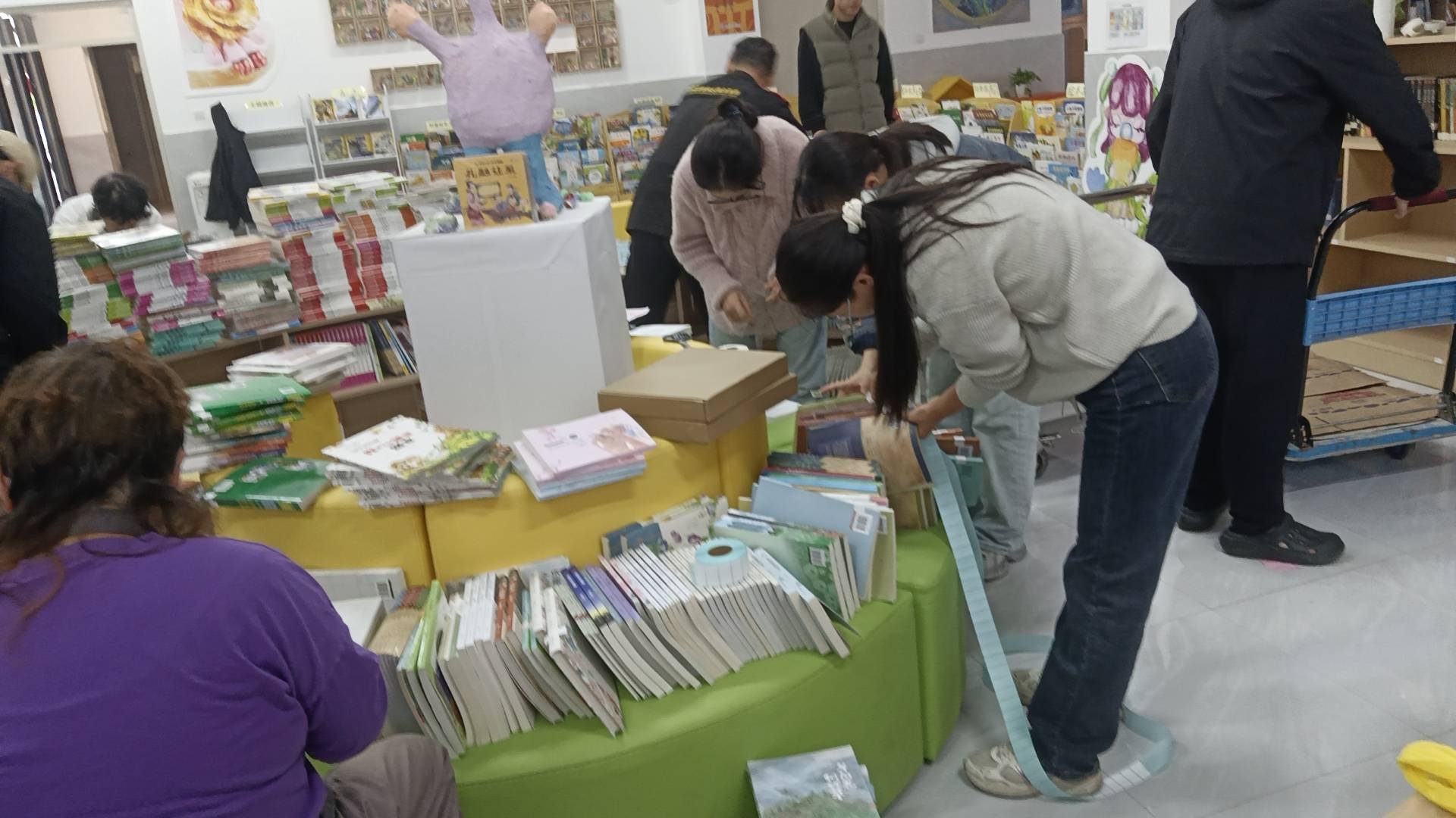 孩子们(lzy,zxb,lak,yy,xlx)和周老师,以及我一起接力拆箱贴签录入。。不过我很快只能顾及借还