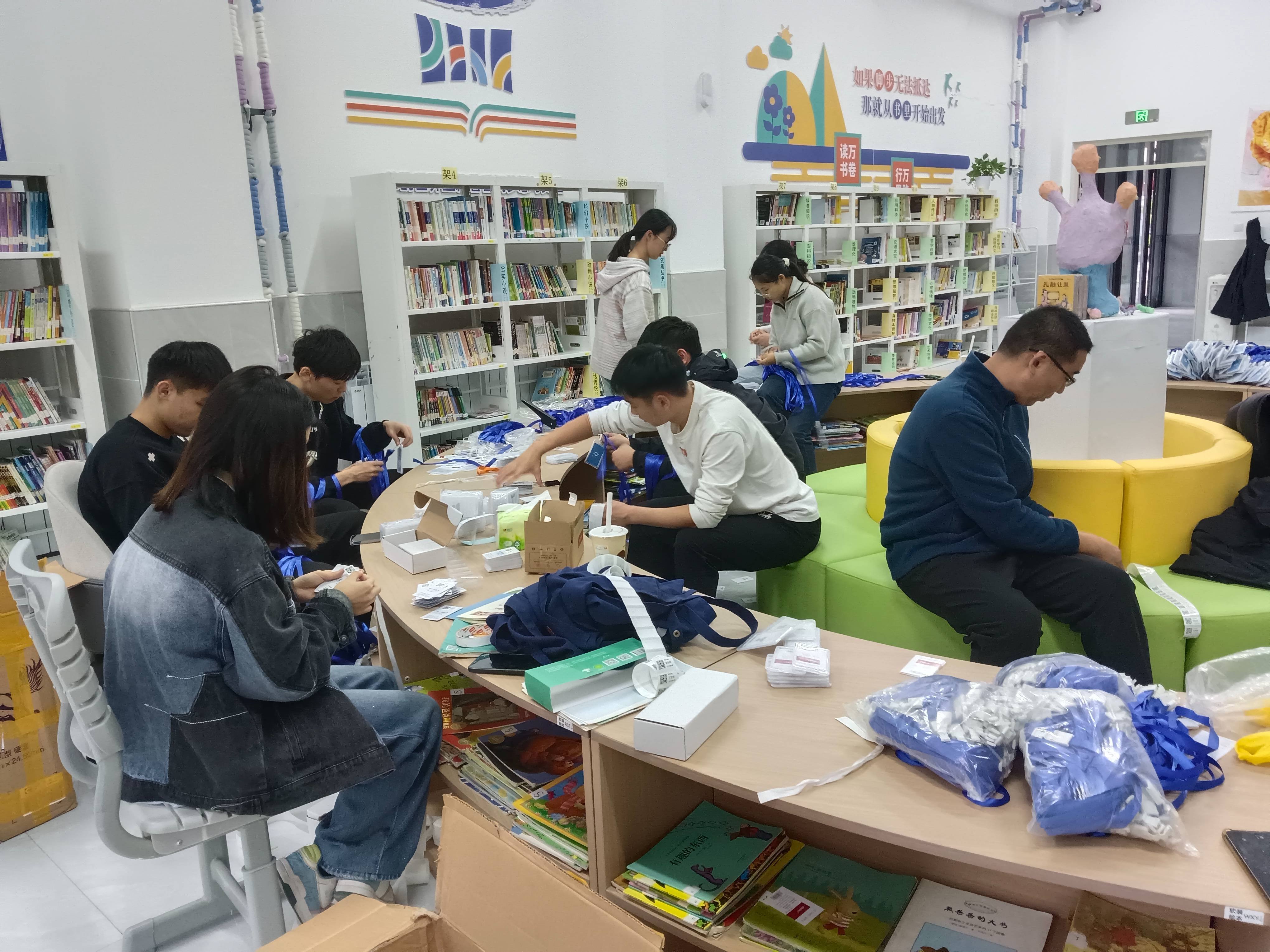 6位北京微澜家人走后,7位校方实习老师和微澜志愿者刘珊珊的到来,主力军的强大,使今天完成所有图书的整备,又把所有学生借阅卡制作完成,感谢大家付出,今天辛苦大家了。