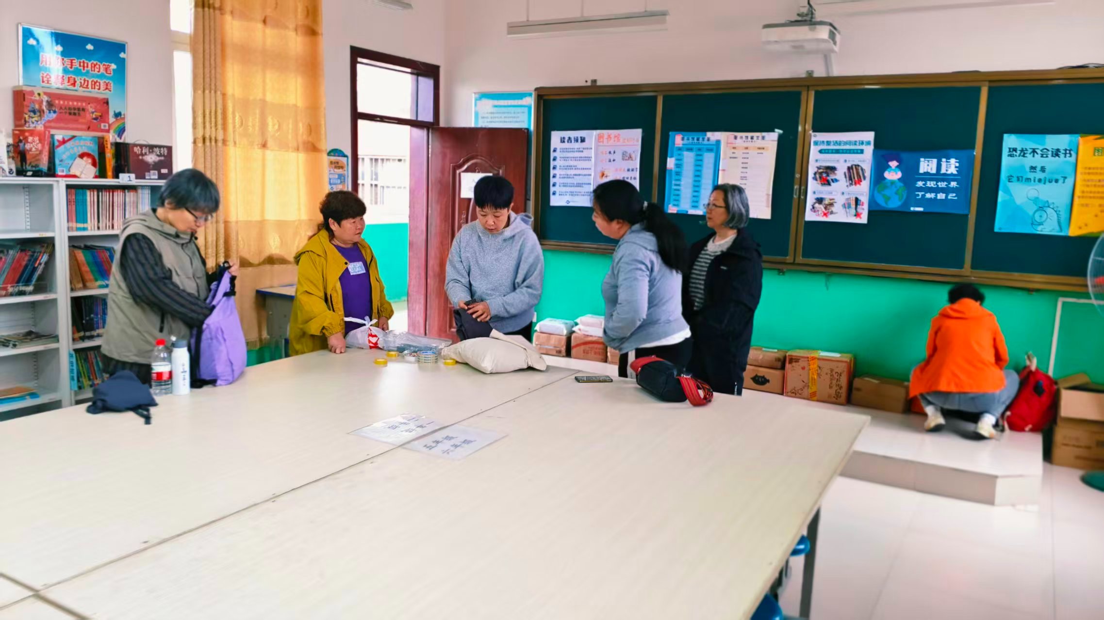 一年前参与开馆整备的5馆所在学校刚完成搬迁合并。今天北京小队和忠毅老师、学校几位年轻老师一起整备。