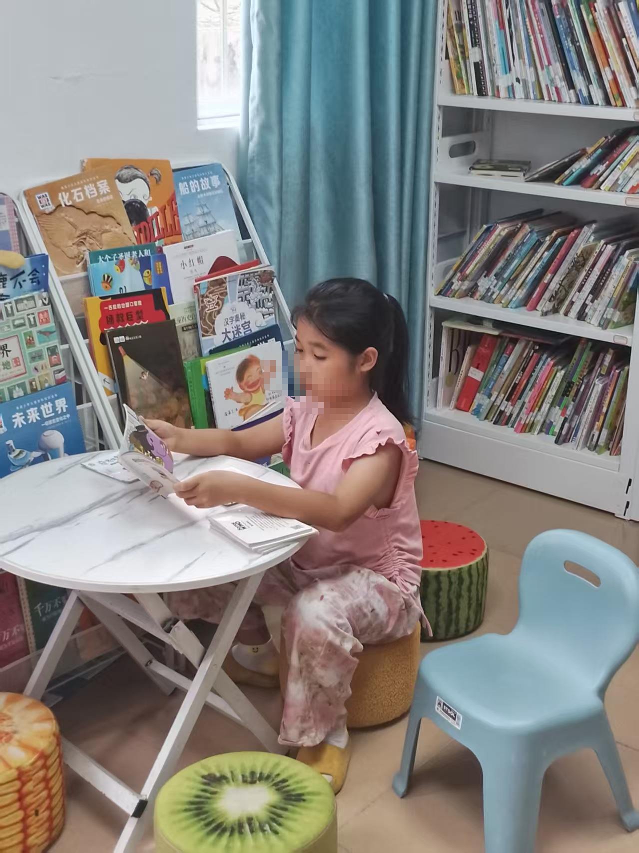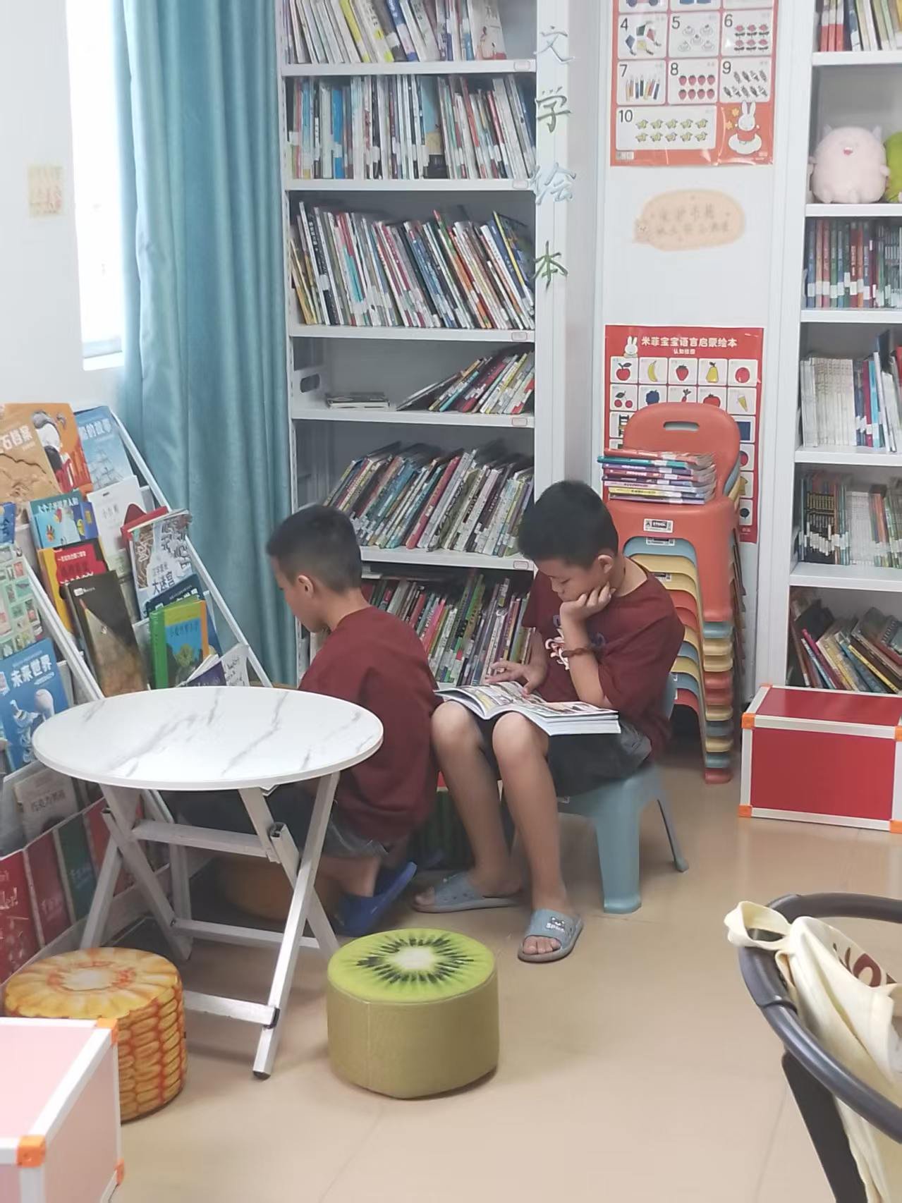 整理了一遍书架,修补了一些破损书籍。有几个孩子进来看书、还书,还问我今天怎么也开馆了😄