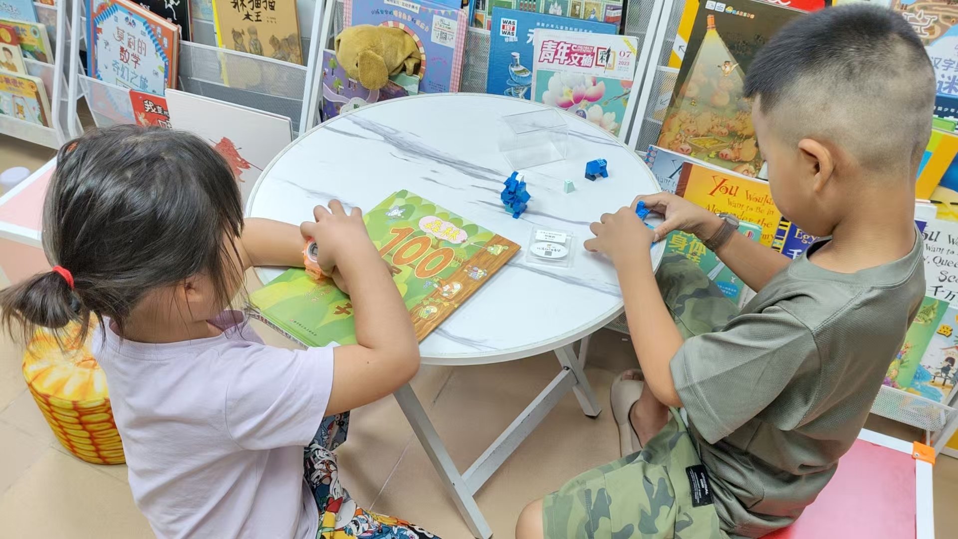 今天和志浩一起值班,终于见上面了。今天我占据了工作区,谢谢志浩一直帮忙整理图书以及耐心的和孩子们互动和交流。