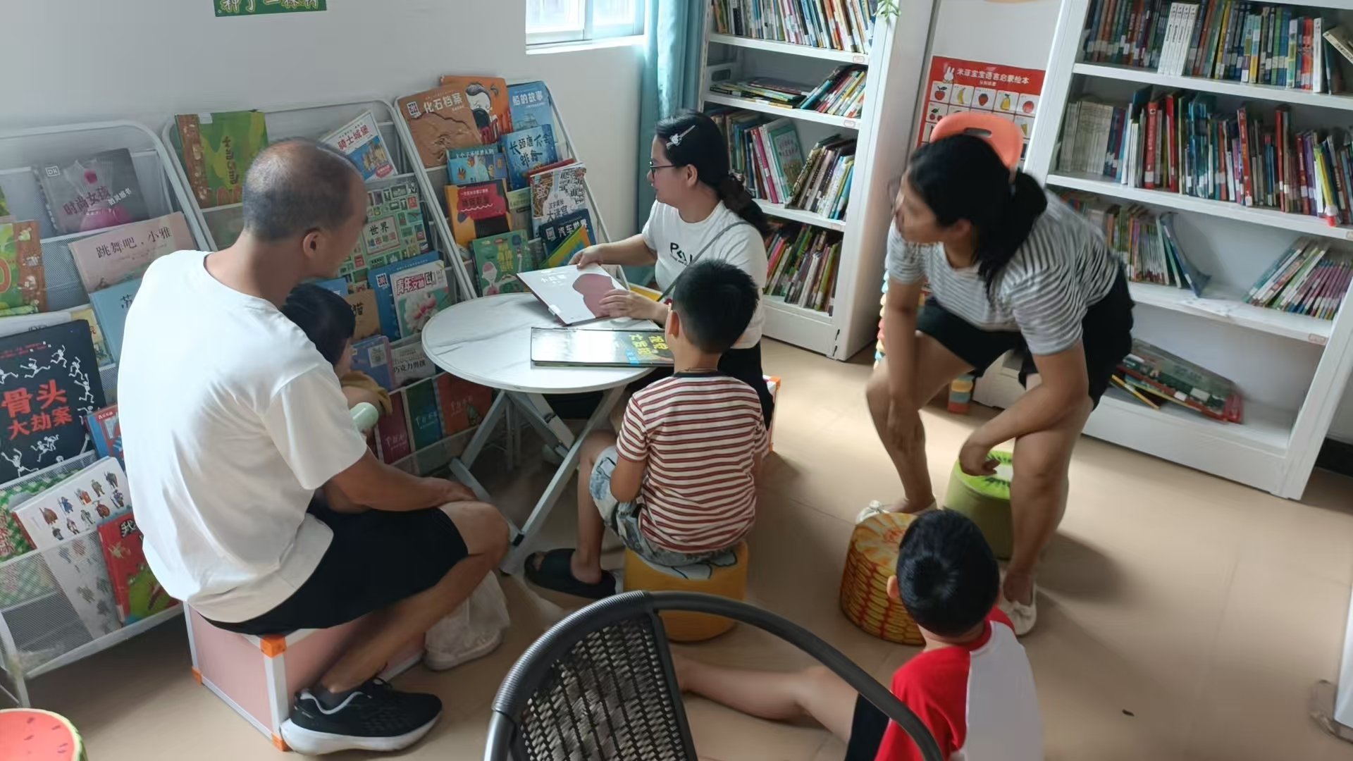 秋老虎让天气炎热未散,来馆的孩子们多了起来,下午四点四十了,有位家长带着孩子来就问:还有二十分钟吧?是的,那就好,还可以看一会绘本,孩子高兴滴自己选书放到妈妈跟前,好,两人一起共读起来,短短的时间却是暖暖的幸福感!