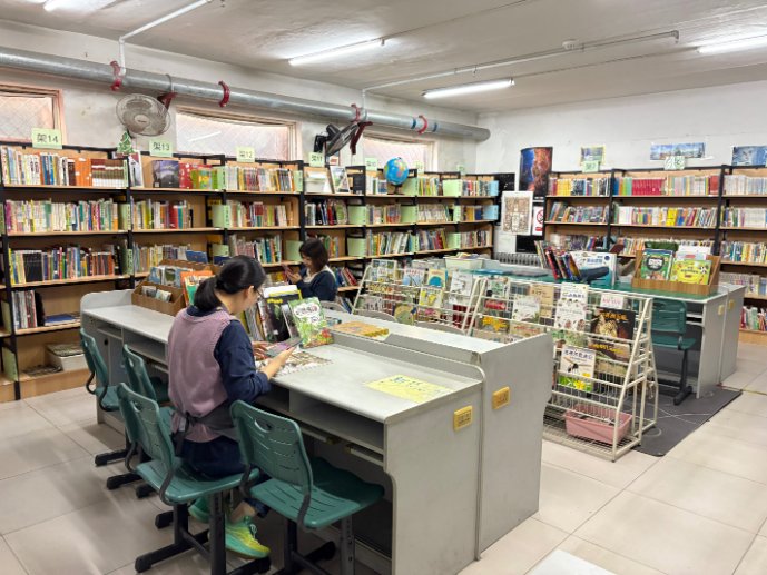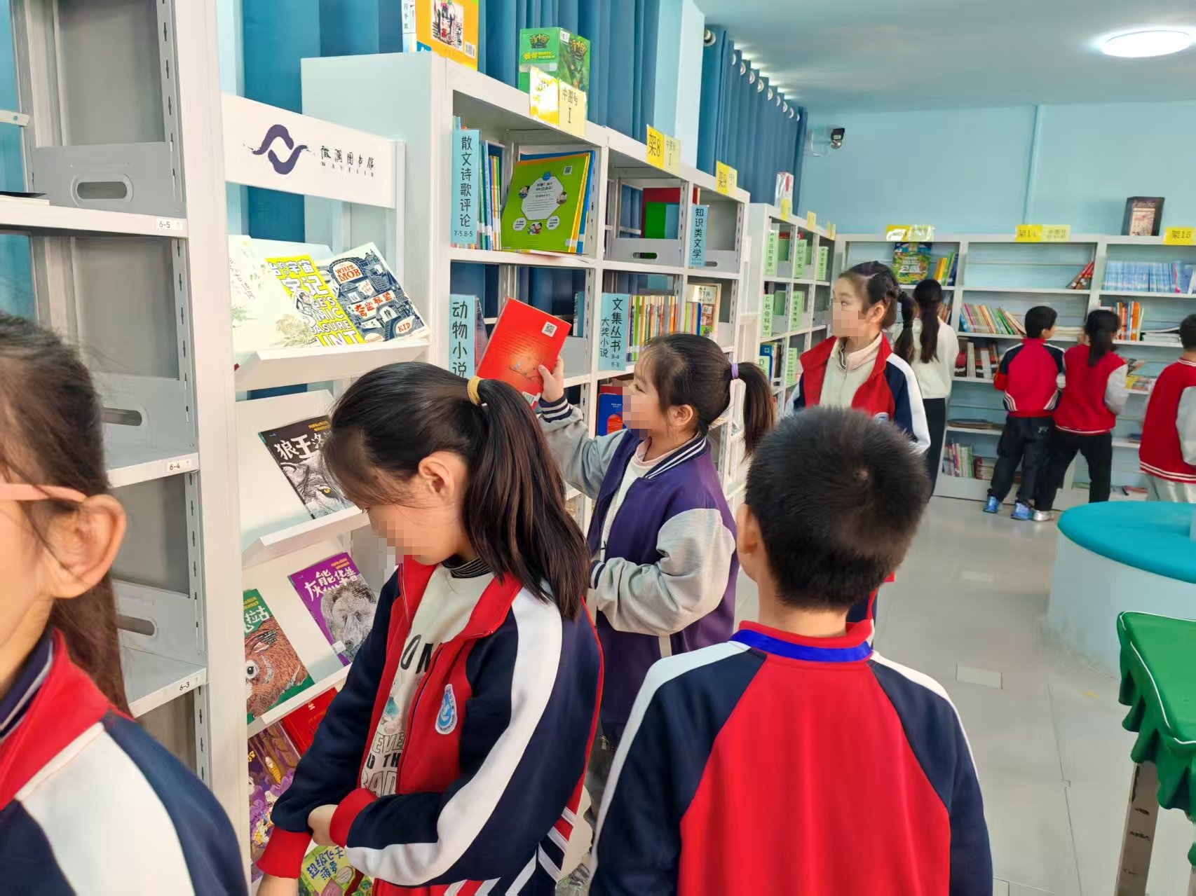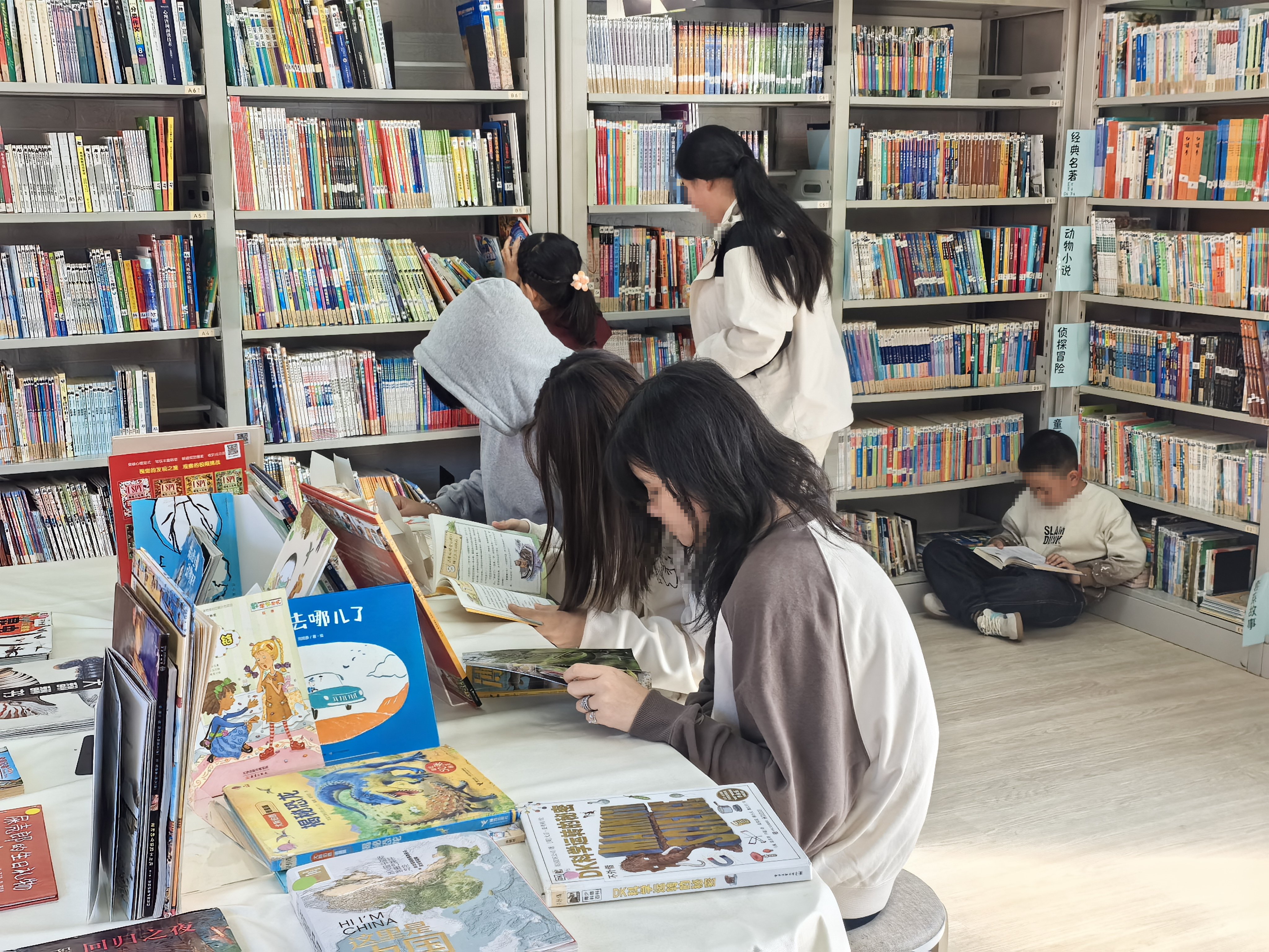 第一次来搬家后的4馆,没估计好时间迟到了十几分钟。到图书馆有读者在看书,是学校的阅读课。