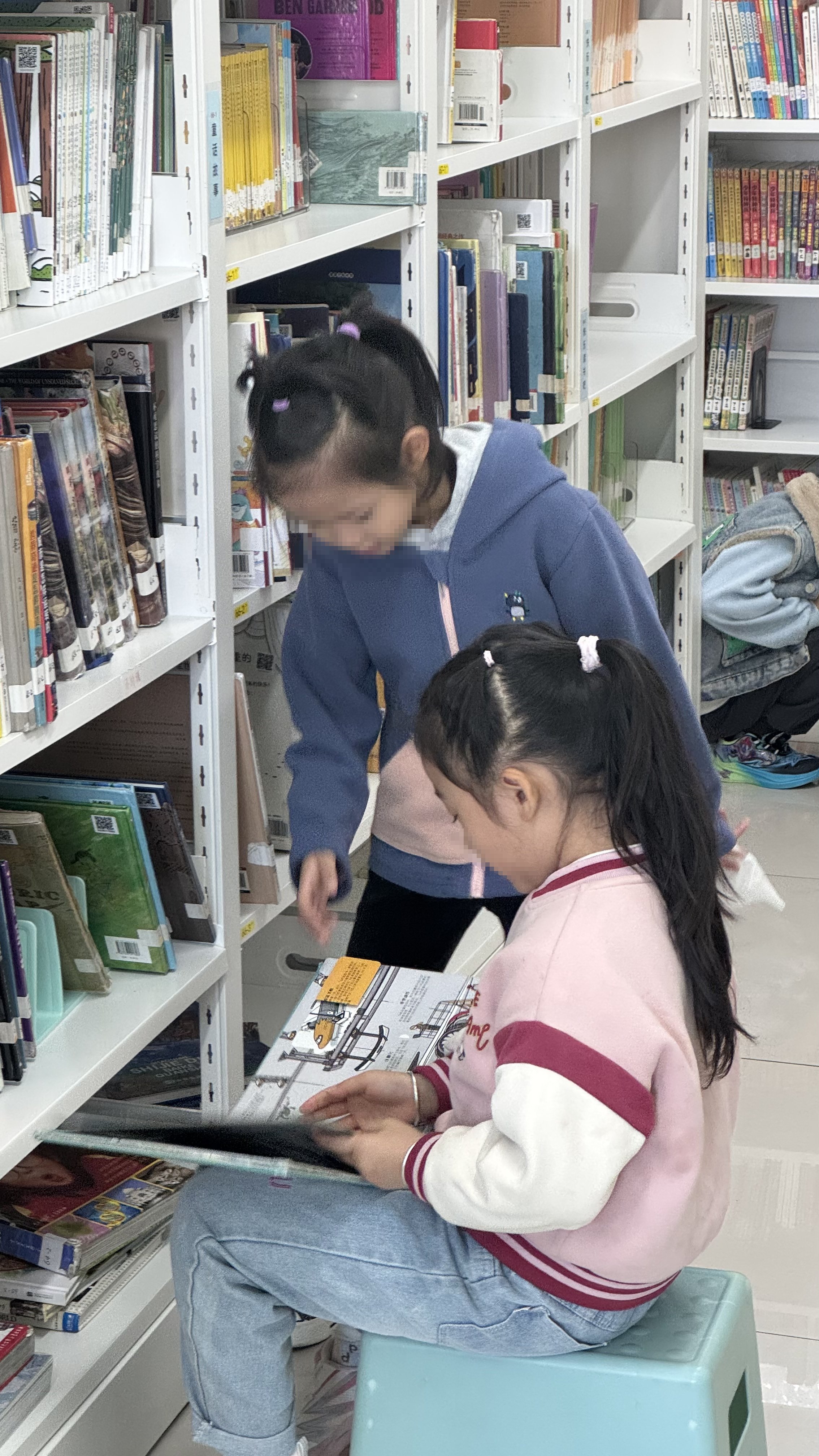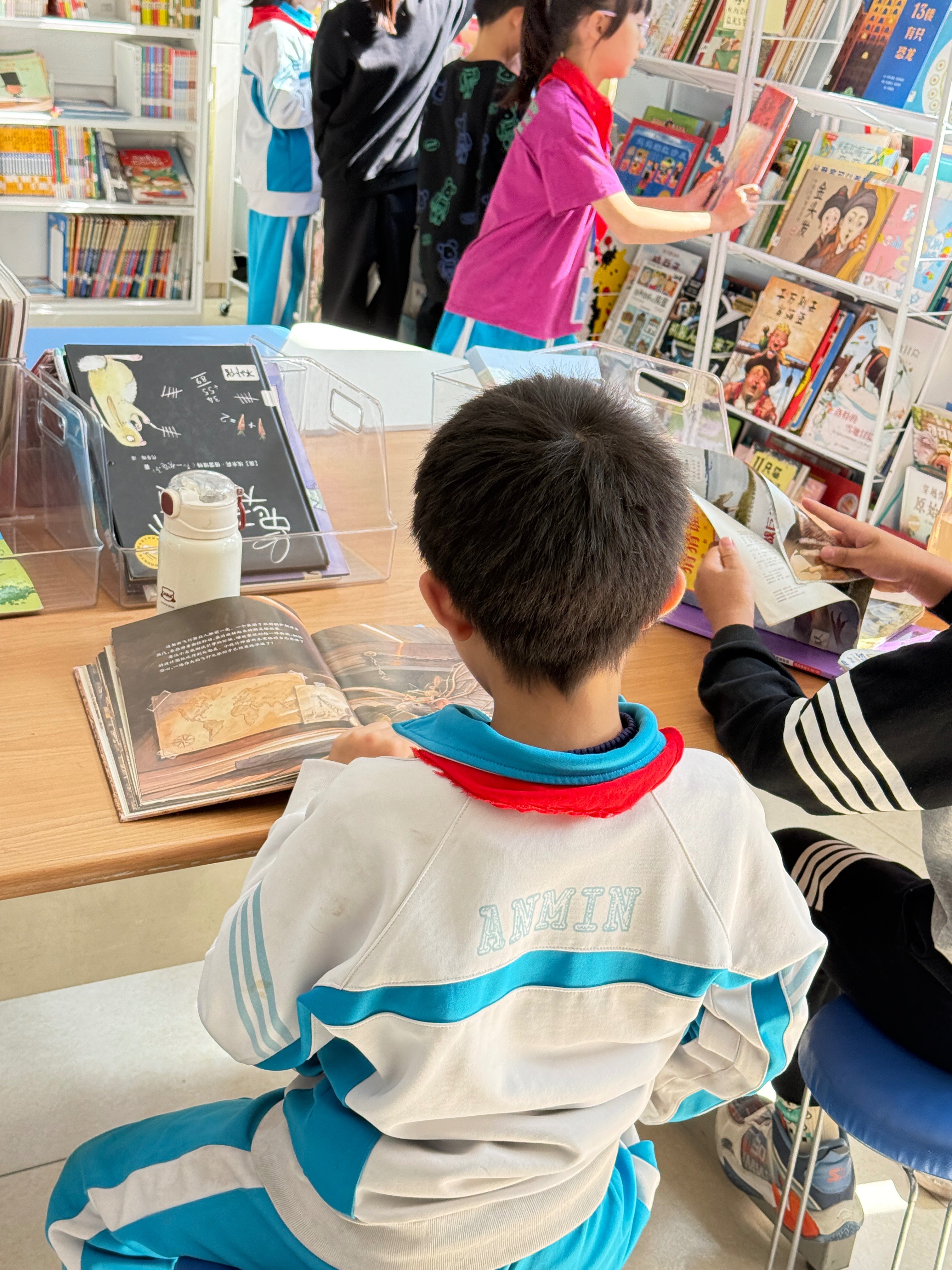 今天少了一年级的参与,整体馆里读者流动少了,二三年级那几个熟面孔还比较常见,高年级几乎不进馆。