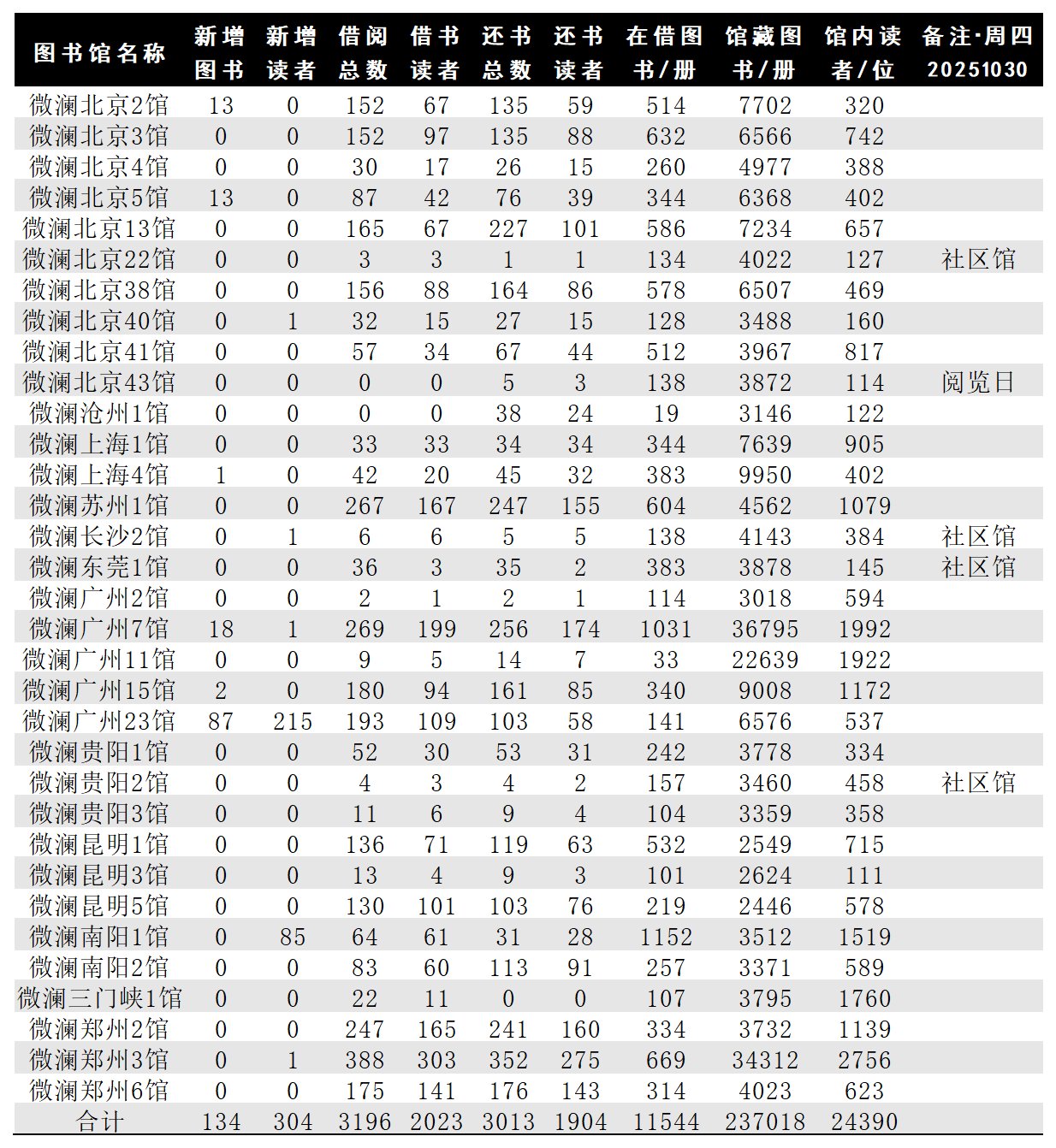 33家馆日常开放借阅,为2023位读者借阅图书3196册次,处理归还图3013册(1904人);6家馆购买/受捐/学校馆藏等录入上架图书134册,6家馆录入新读者304位。