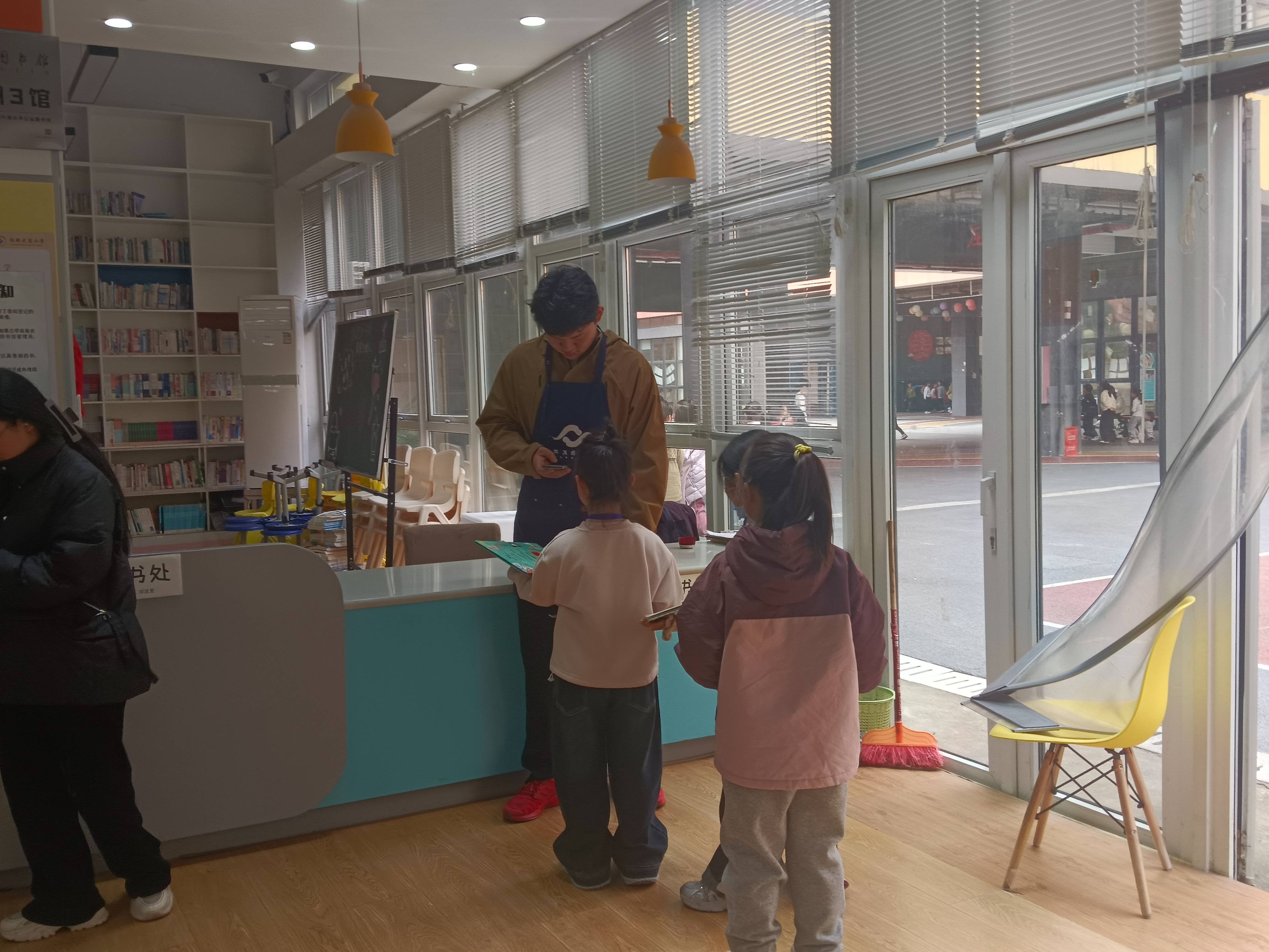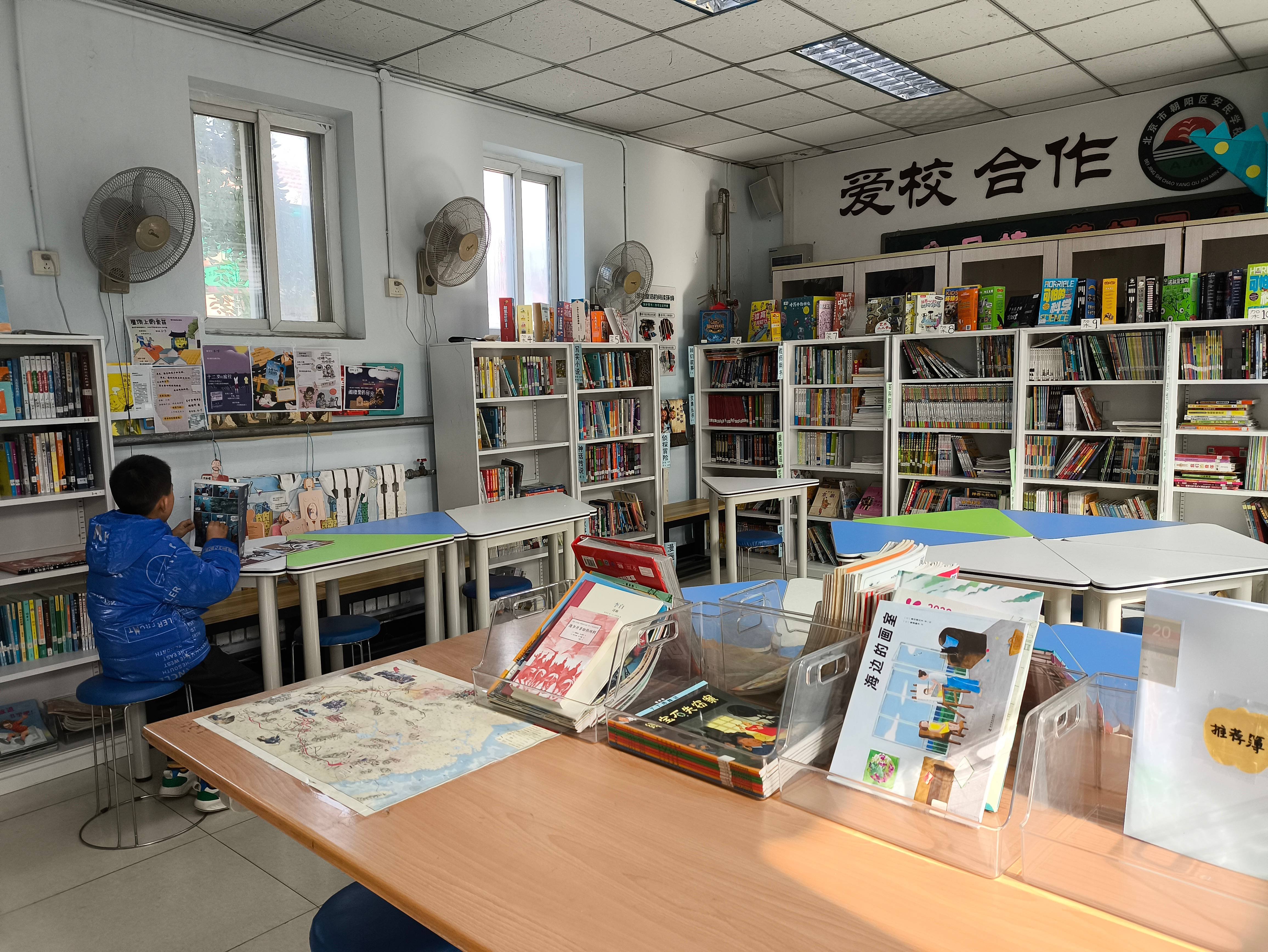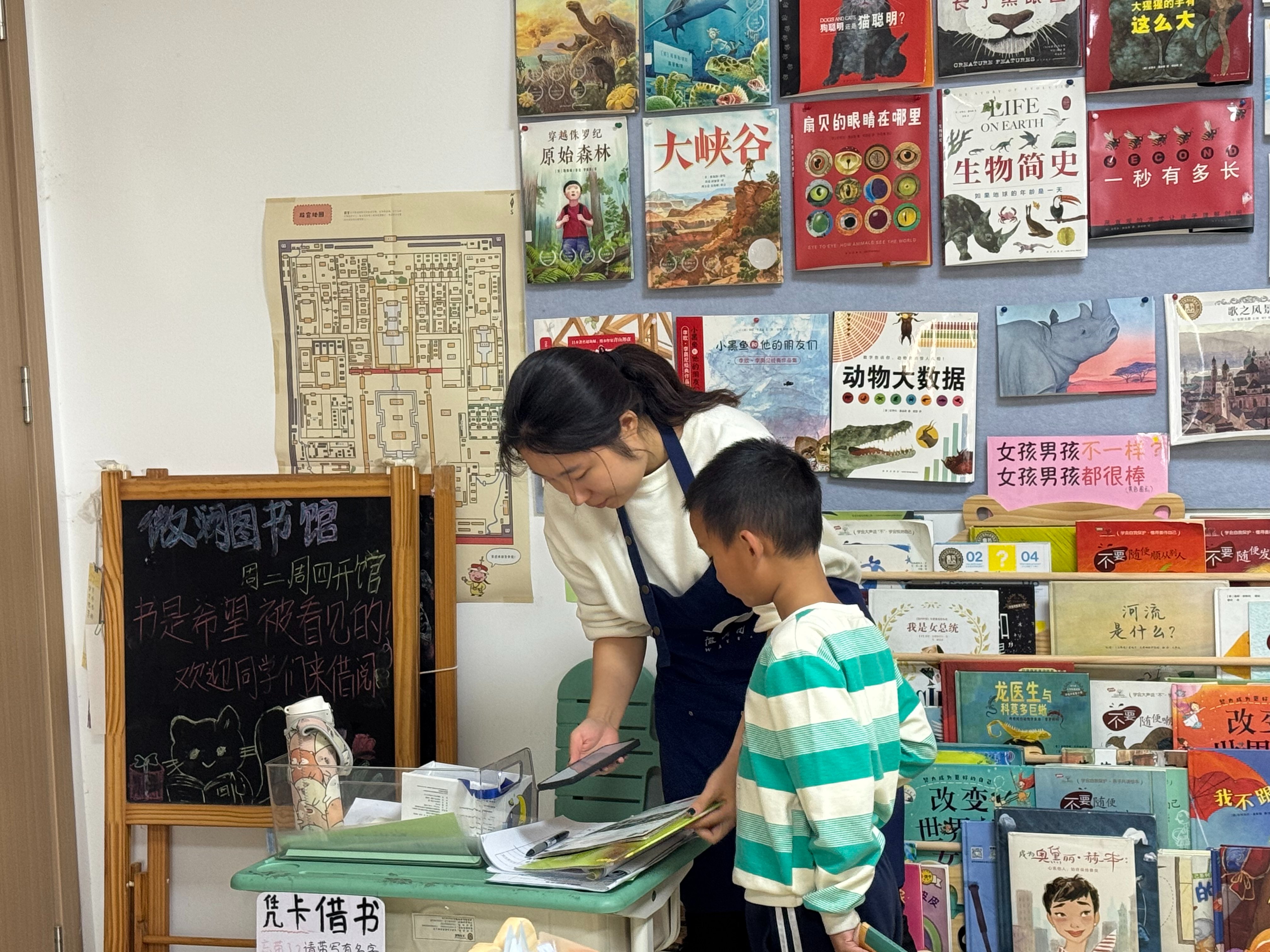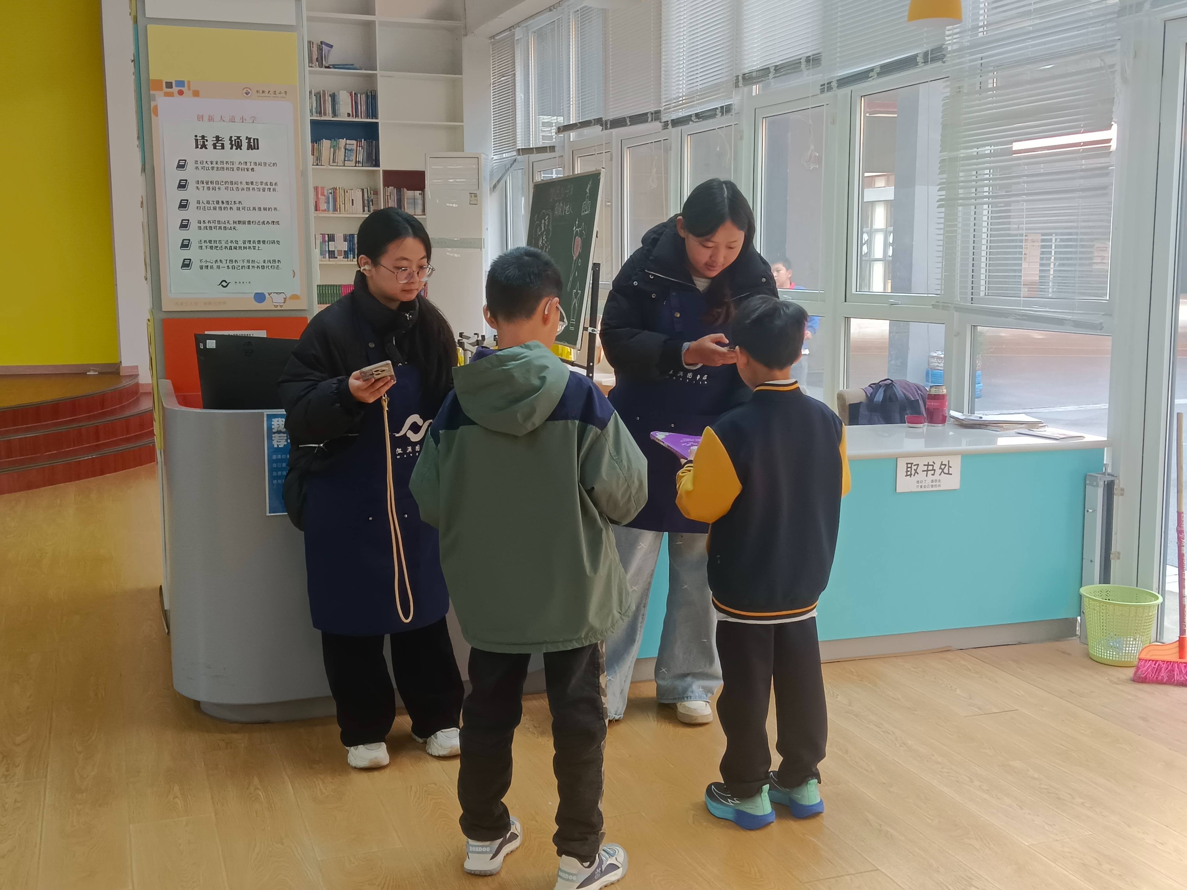 三个人值班工作起来要轻松些,无论是中午高峰时间,还是孩子们上课后扫码借书。