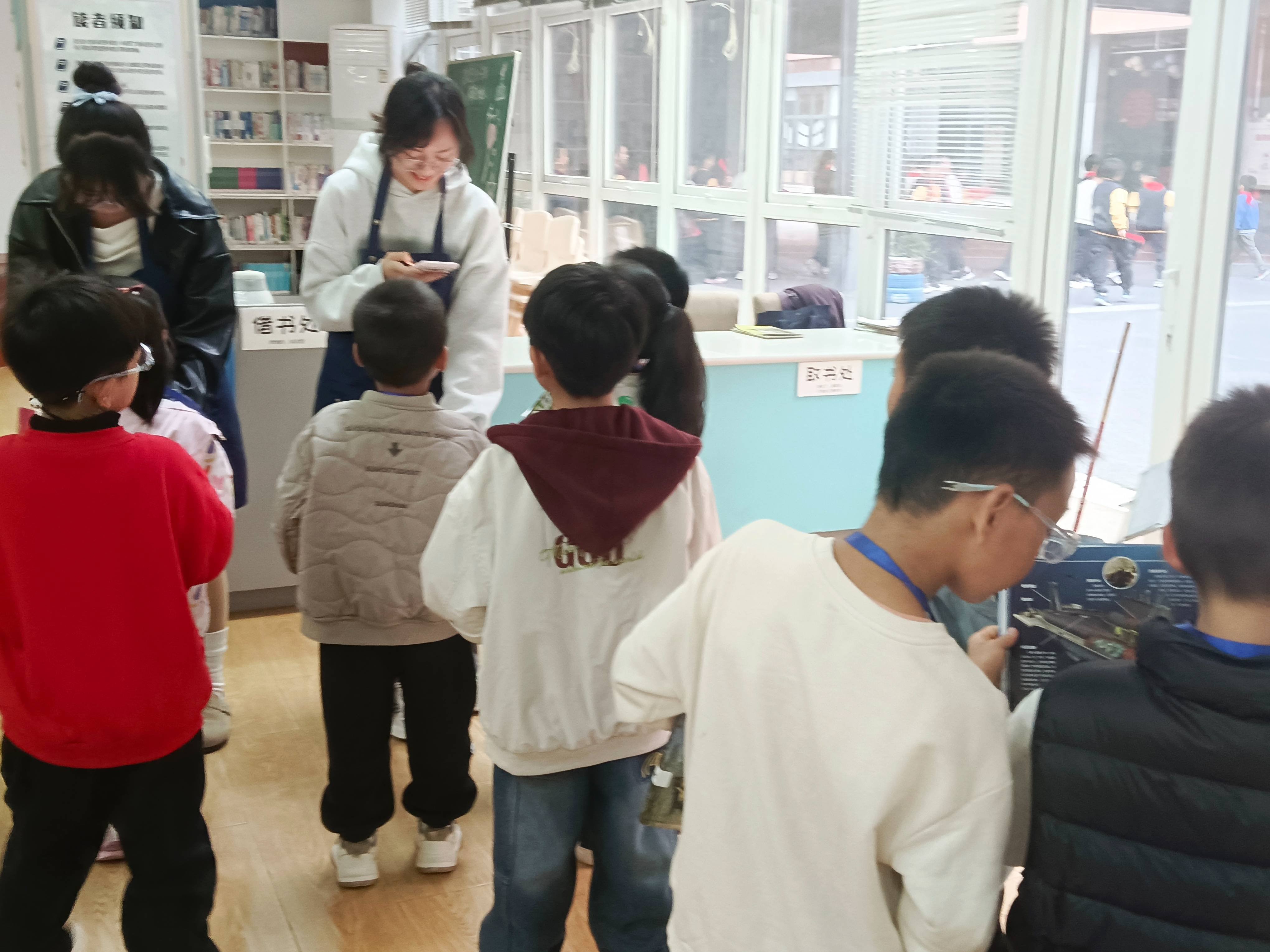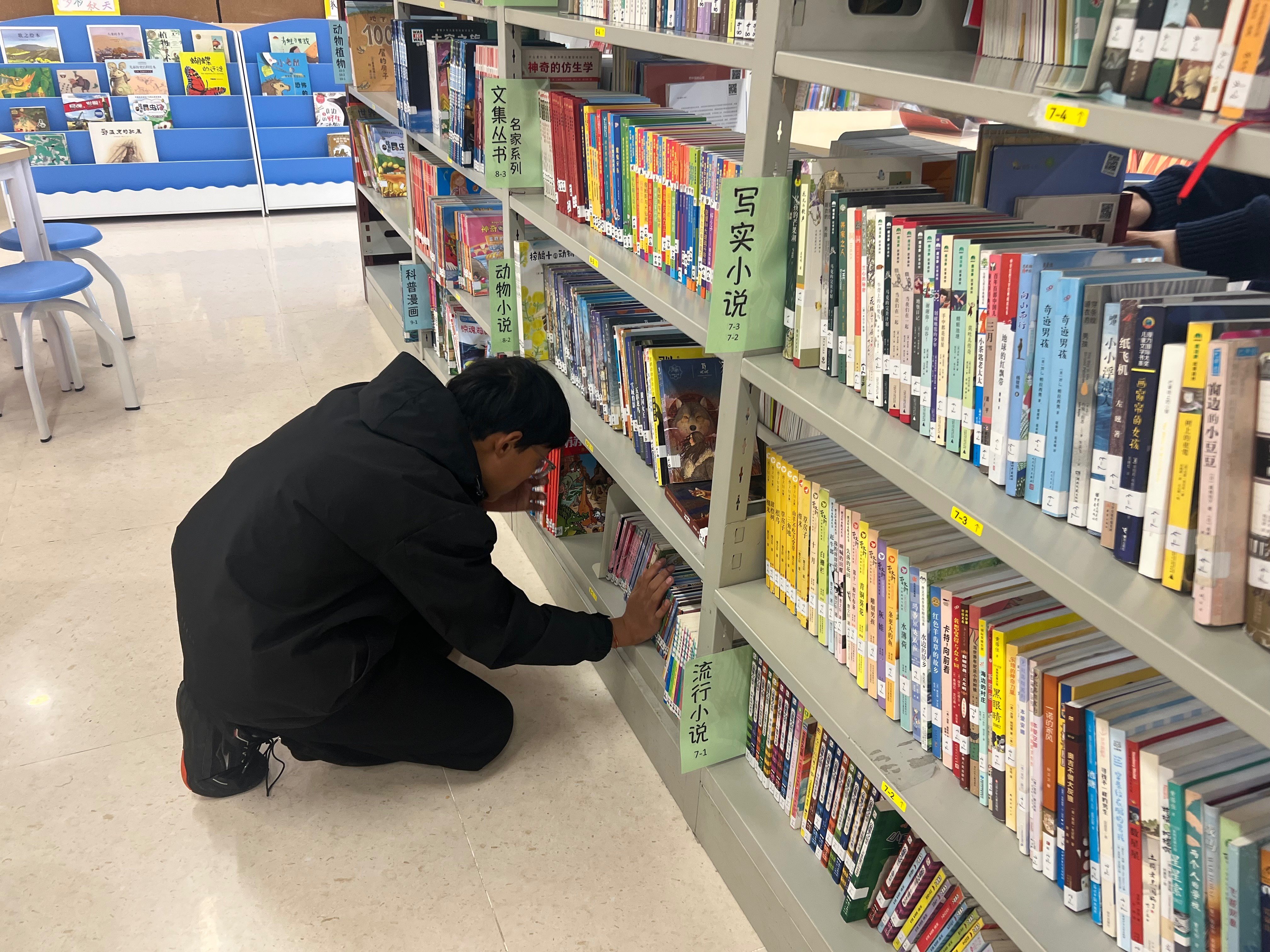 午饭后有两三个小读者过来还书看书。下午的第一节课有班级辅导员带孩子们来看书。我学习馆长和馆员如何给孩子们借书还书?逐渐熟悉业务。孩子们借书还书都很积极配合,看书的时候很投入。