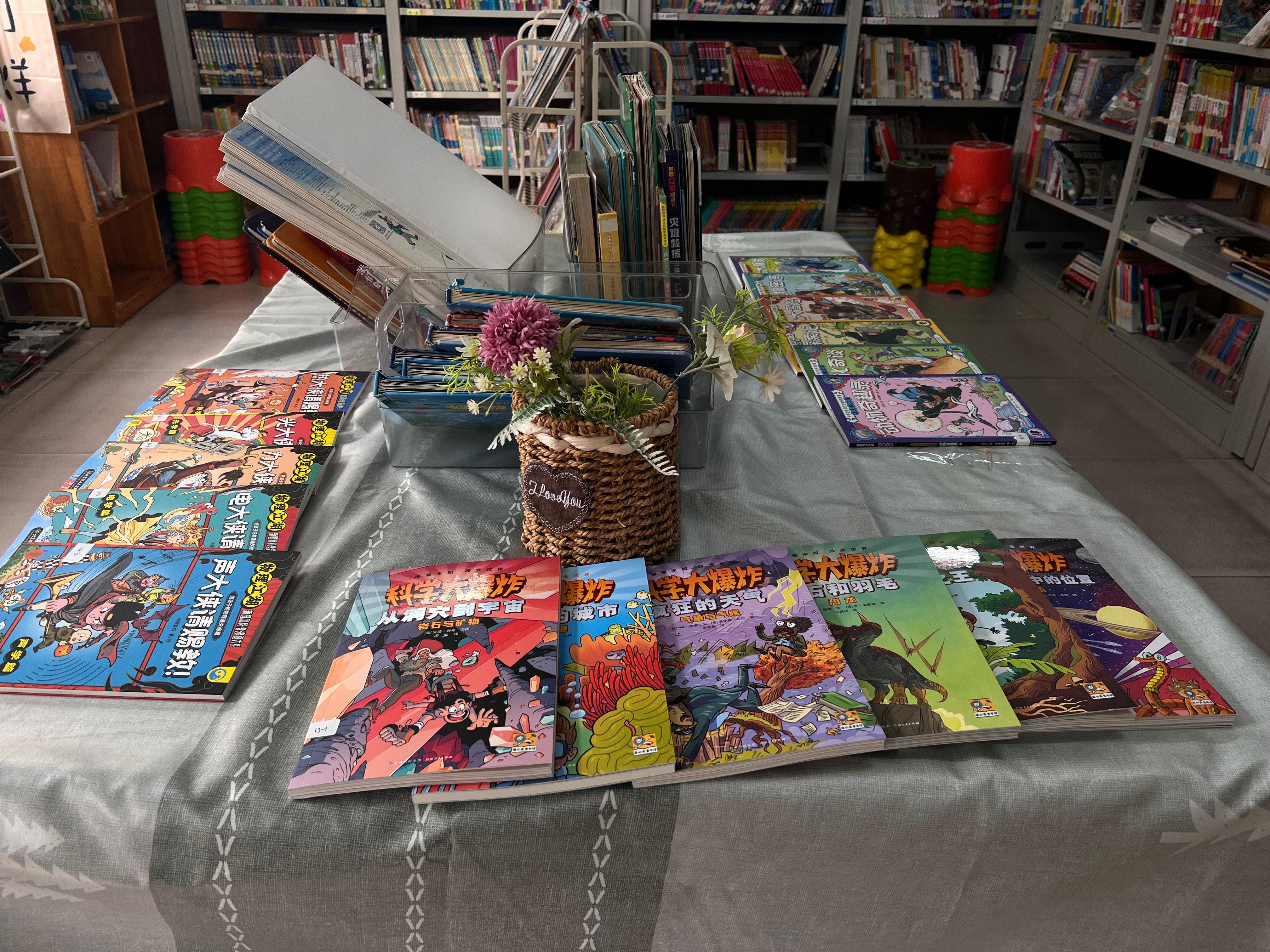 上次新添的小魔科普系列另一本,被孩子们抢着借阅,后悔该多买一套。今天有个小同学借阅半小时漫画,馆内这系列比较全,几十本,他居然看了大部分,这套书个人也比较喜欢。混子哥的漫画风格把历史演绎得生动简练。把昨天的新书放在桌上,便于孩子们翻看,最后再统一整理。今天借阅有序,孩子们表现不错。