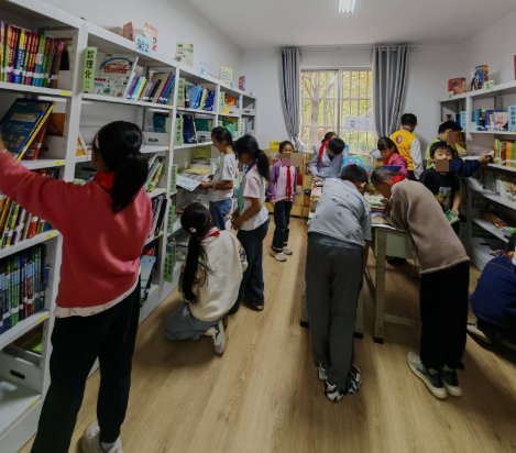 今天一入校园,几个孩子就雀跃地跟着我,一边喊着“图书馆阿姨来了!”六七个孩子一起跟到图书馆门口等开门。 图书馆对他们如此有吸引力,让志愿服务的我也心生喜悦。