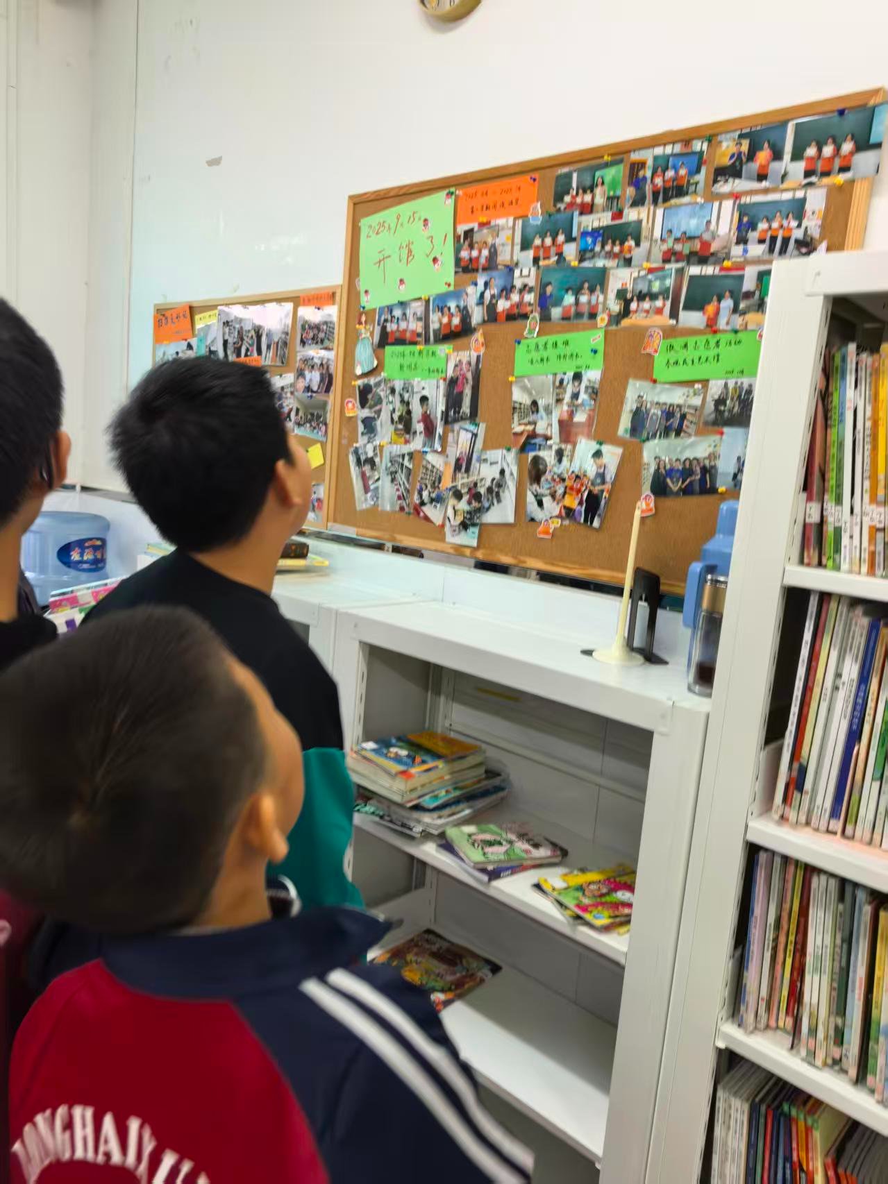 2.孩子们发现照片墙更新了,都在驻足观看,时不时指点一下那不是xxx么;