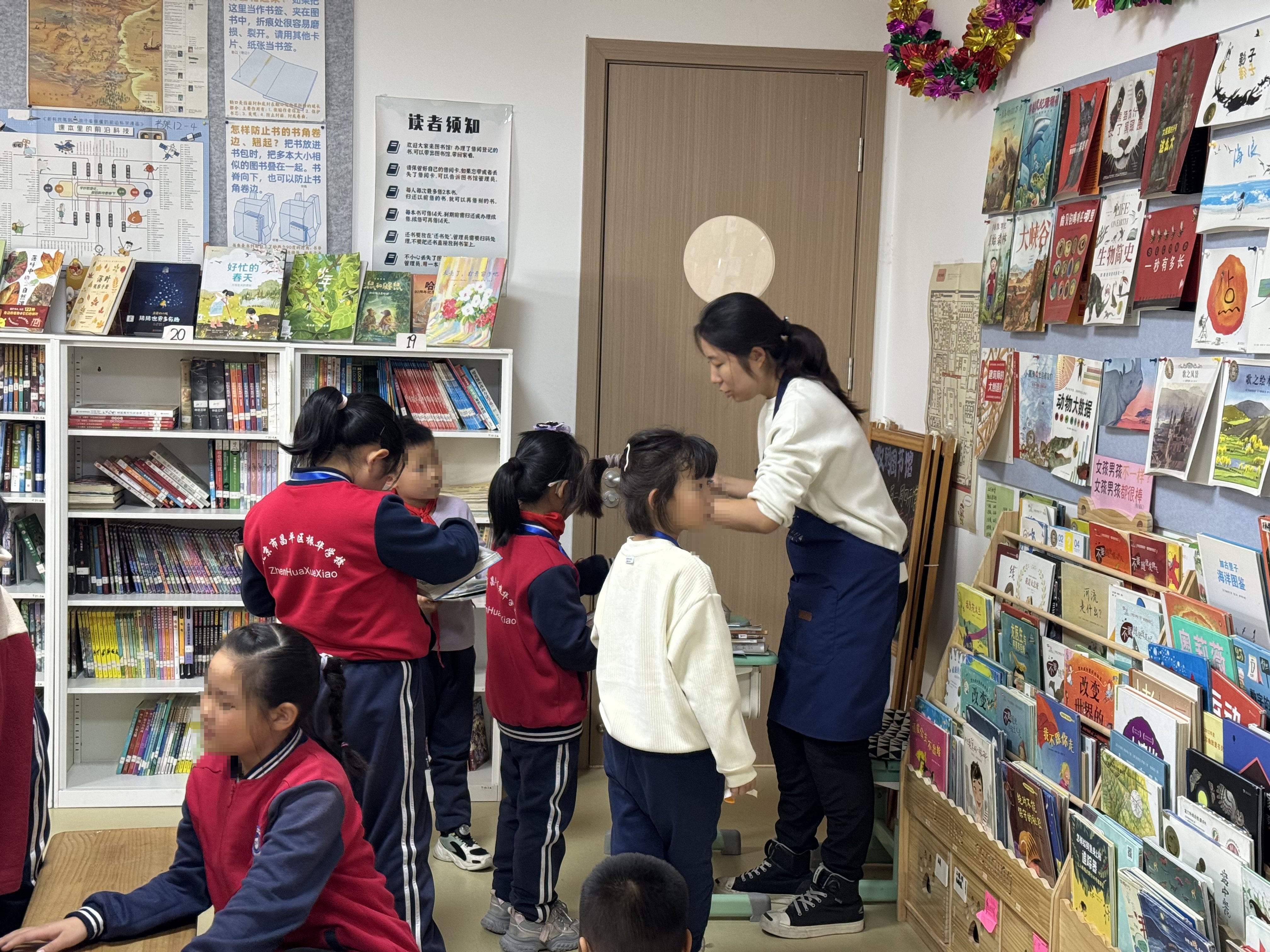 同学们看书热情一如既往的高涨,其中有几个孩子是周一社团见过面的,所以一看到我就热情的跟我打招呼。