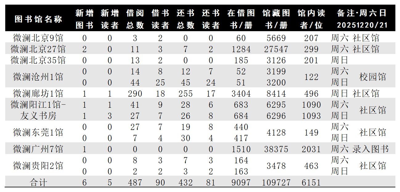 7家馆日常开放借阅,为90位读者借阅图书487册次,处理归还图432册(81人);4家馆购买/受捐/学校馆藏等录入上架图书6册,3家馆录入新读者5位。