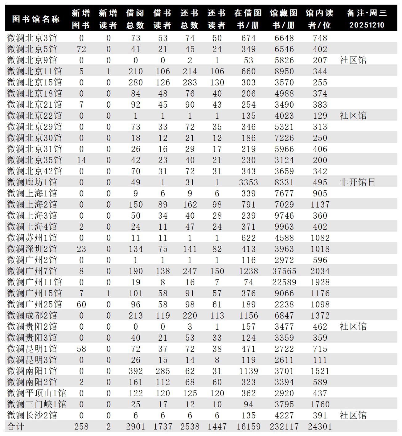 34家馆日常开放借阅,为1737位读者借阅图书2901册次,1447人归还图书2538册;11家馆购买/受捐/学校馆藏等录入上架图书258册,2家馆录入新读者2位。