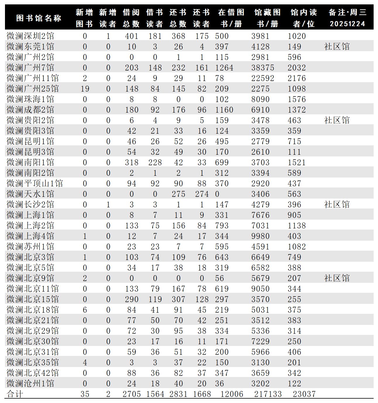 各馆数据日报20251224/周三