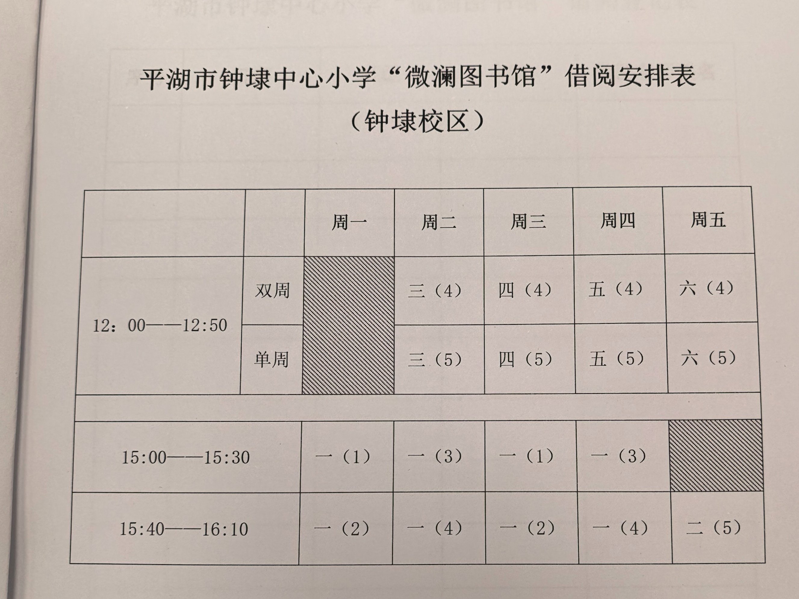 每周二至周五中午12-12:50午休时段:三-六年级共8个班,轮流到馆阅读和借书,每天1个班。