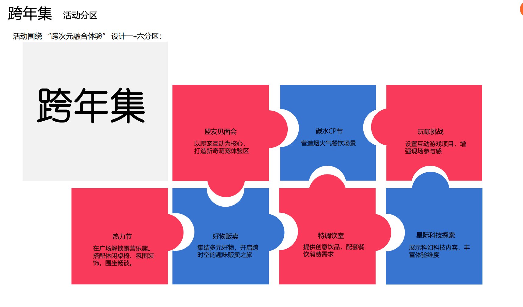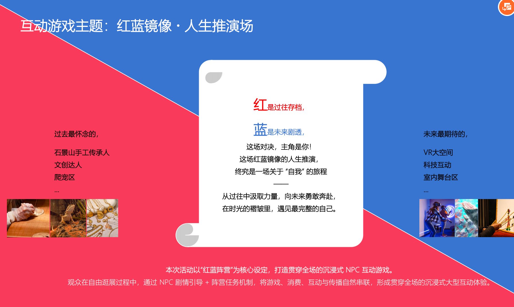 首钢园野趣跨年集活动锚定年轻圈层“潮流玩乐”核心需求,以“剧本杀+沉浸式体验” 为核心创意,打造沉浸大型剧本体验、潮流互动打卡、创意好物市集等特色板块,构建兼具烟火气与高效消费转化力的沉浸式场景。