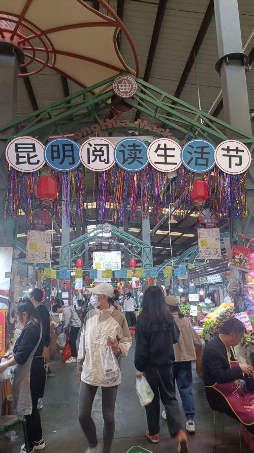 去年春天,微澜昆明的伙伴们代表微澜参加了璞玉书店在东华市场营造的一场蔬菜+阅读的鲜活组合~