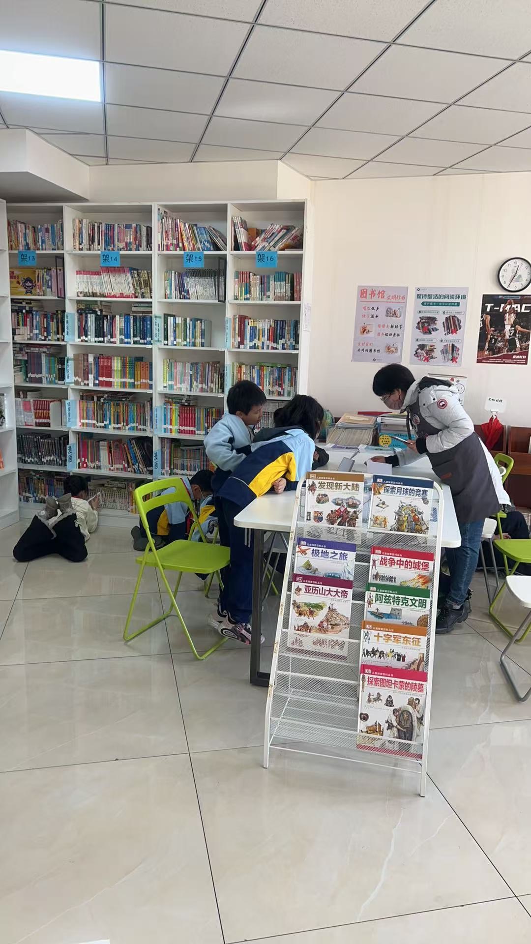 今天荣丽老师、梦萍老师和我值班。 今天有点冷,我比以前出来晚些。我到图书馆时,荣丽老师已经搞完卫生了。整个图书馆整洁又明亮。 今天又有新书上架啦,新书录入后放在了醒目的书架上。有几本很快就被孩子们借走了。天气虽冷,孩子们看书的热情依然高涨。 新的活动开始了。孩子们选择自己感兴趣的问题后作答,孩子们的答题卡被老师们一一展示在活动栏里。 下午,我给一年级二班……查看更多