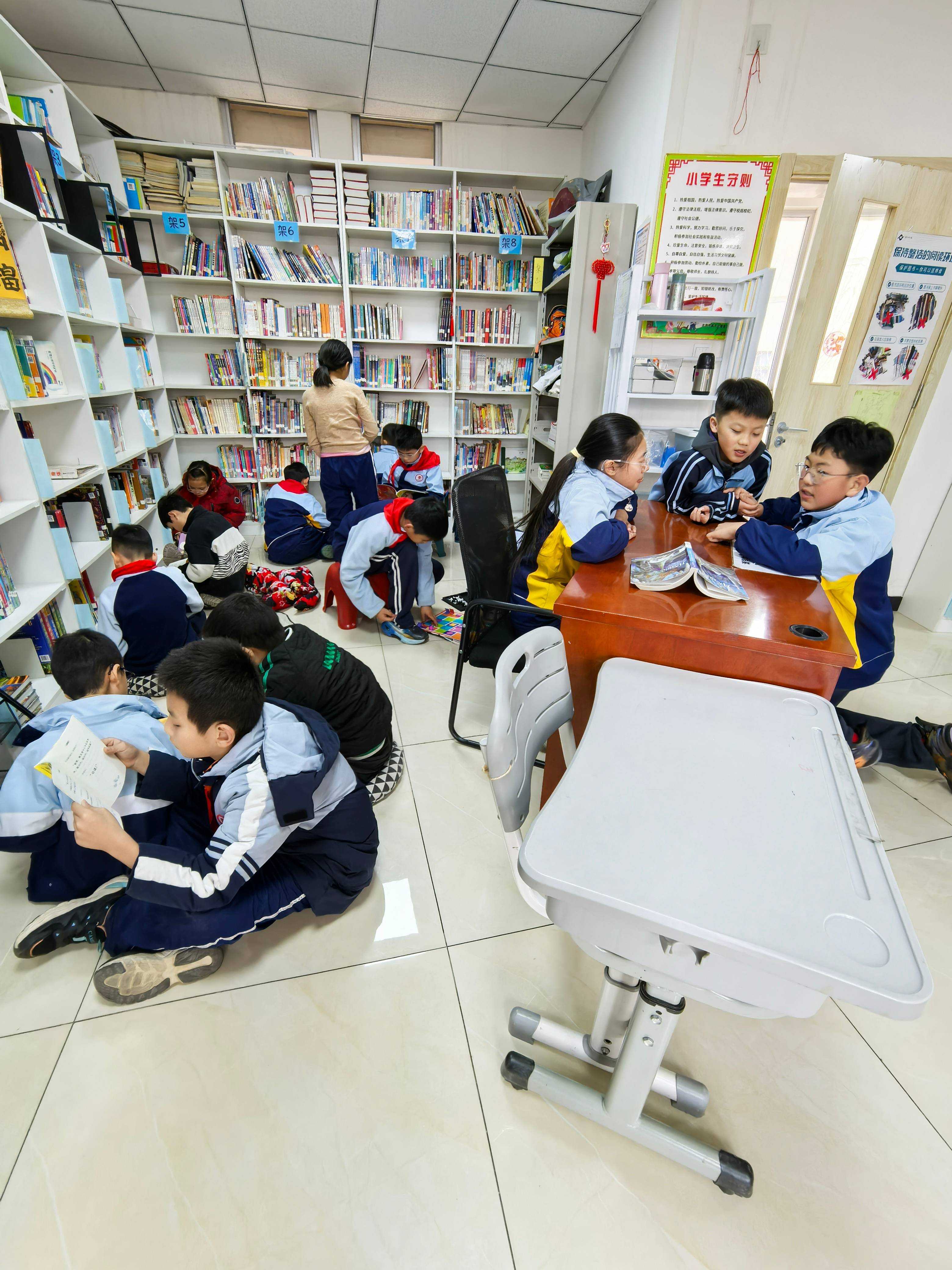 本学期倒数第二次值班,终于和罗老师,mimi老师凑到了一起。今天只还书不借书,工作量就明显减少了,更多的是享受和孩子们在一起的时光。中午老师开会,三一班的娃被恩准集体来图书馆,那叫一个兴奋,沿窗户一溜空档都被他们占领。加上其他年级的,差不多有35个学生,虽不断提醒,小小的嗡嗡声汇总在一起也有了不小的动静。后段淘气包们居然还和监督纪律的陶校长玩起了捉迷藏的游戏,当陶校长发脾气说不用上课了,单纯的娃们……查看更多