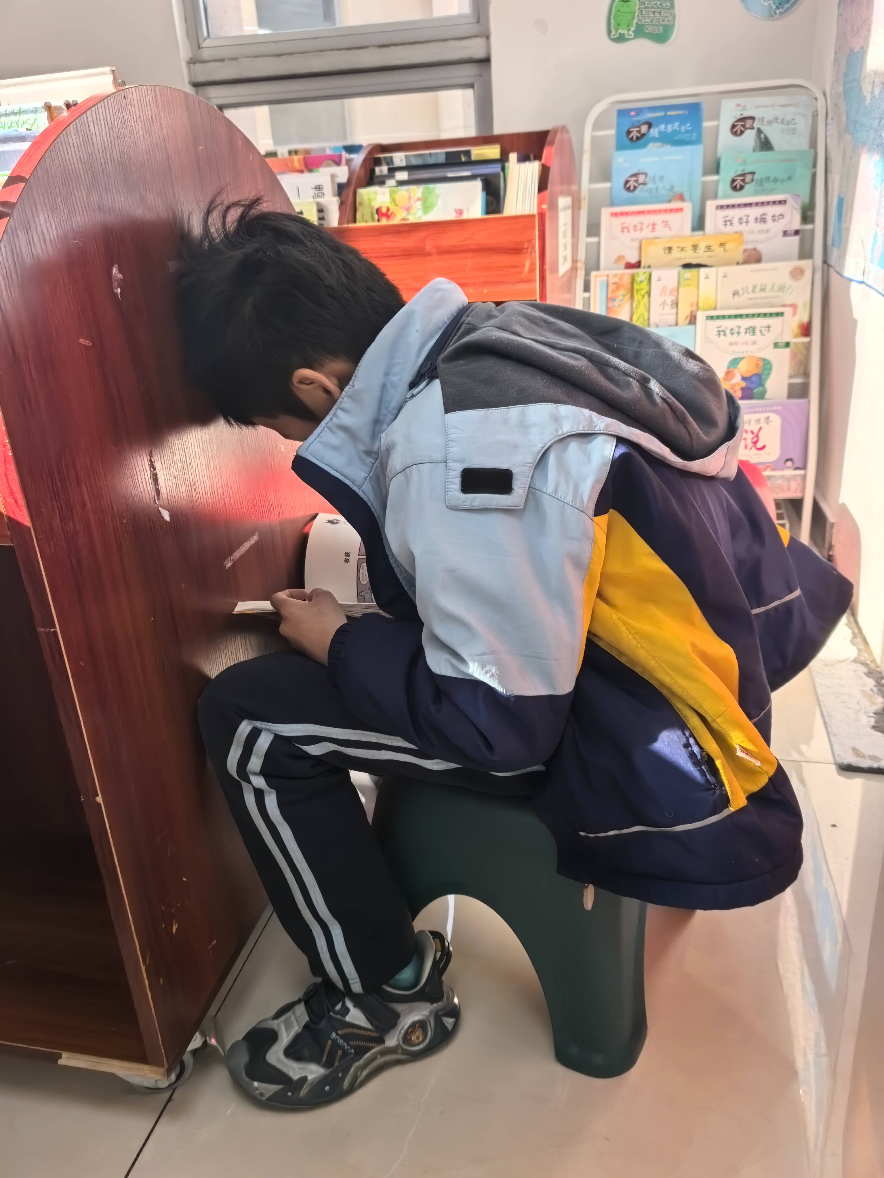 本学期最后一次开馆,和刘娟老师愉快地完成了任务。今天主要任务就是还书和整理书架,每到期末图书回归,书架就出现爆满现象。孩子们心心念念的热门书也终于回来了,所以今天全天,包括午休时间段,馆里都是认真读书的孩子,看得我俩满心欢喜。下午二2班几个男生还是兴奋难抑,总需要提醒,好在故事足够吸引人,也是顺利结束本学期最后一堂绘本课。寒假将至,又要和孩子们分别一段时间了,三月再见啦!