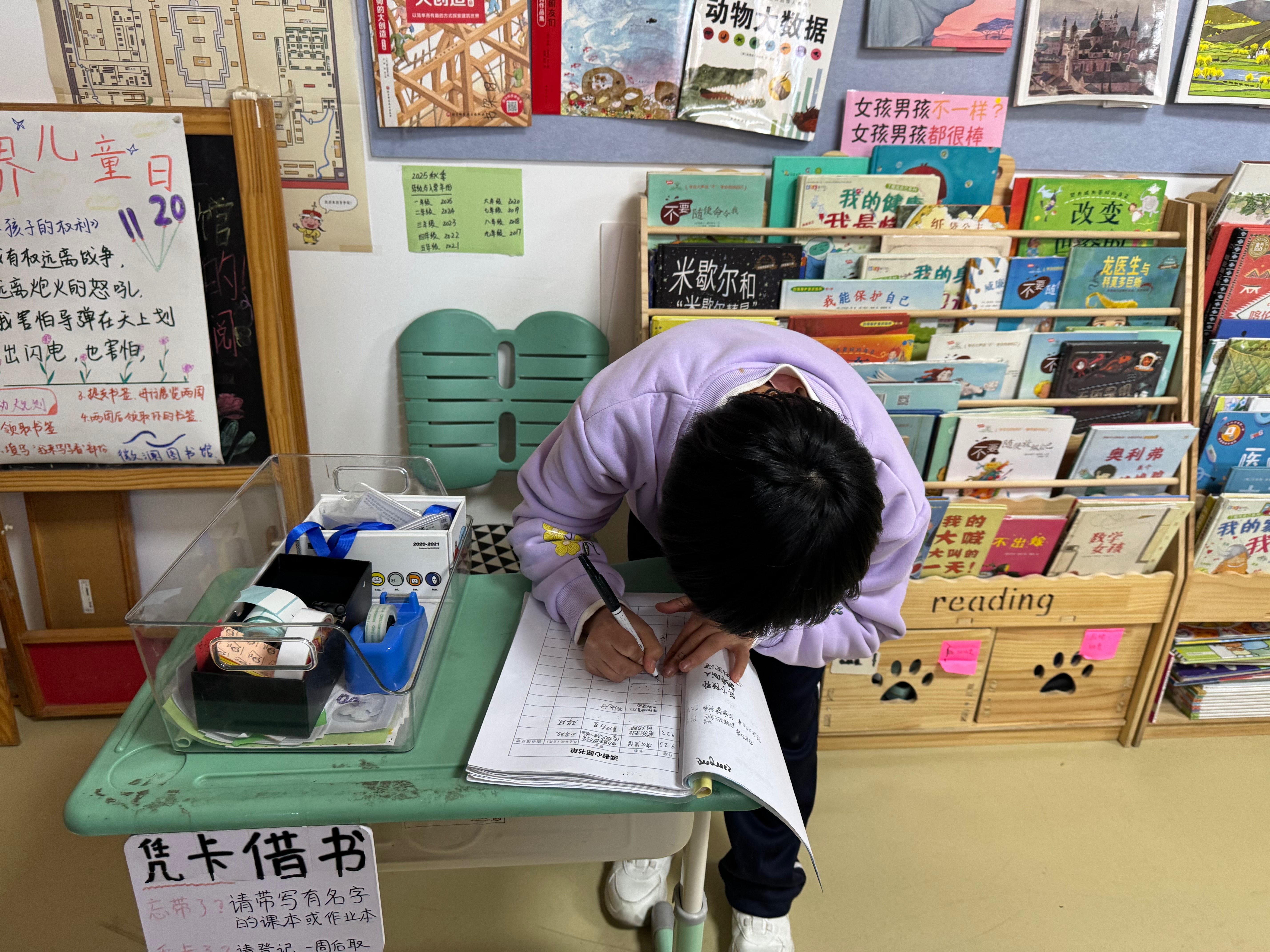 日常借阅:今天高年级的同学来的比较早,在馆里时间还是挺长的,比较关注推理类的图书,三三班、二三班,都来借书了,一三班的小同学,第一次来馆里借书,很兴奋,这看看,那看看,大部分同学进馆后,在找以前听过的绘本,规则还不太懂,需要讲解,最终都选到了自己喜欢的图书。四二班有几位同学,兴趣班都会来馆里借几本书,但一下课就还了,问同学原因,说是只让规定时间借书,不允许自己来借,所以看完就赶紧还了。三一班没来借……查看更多