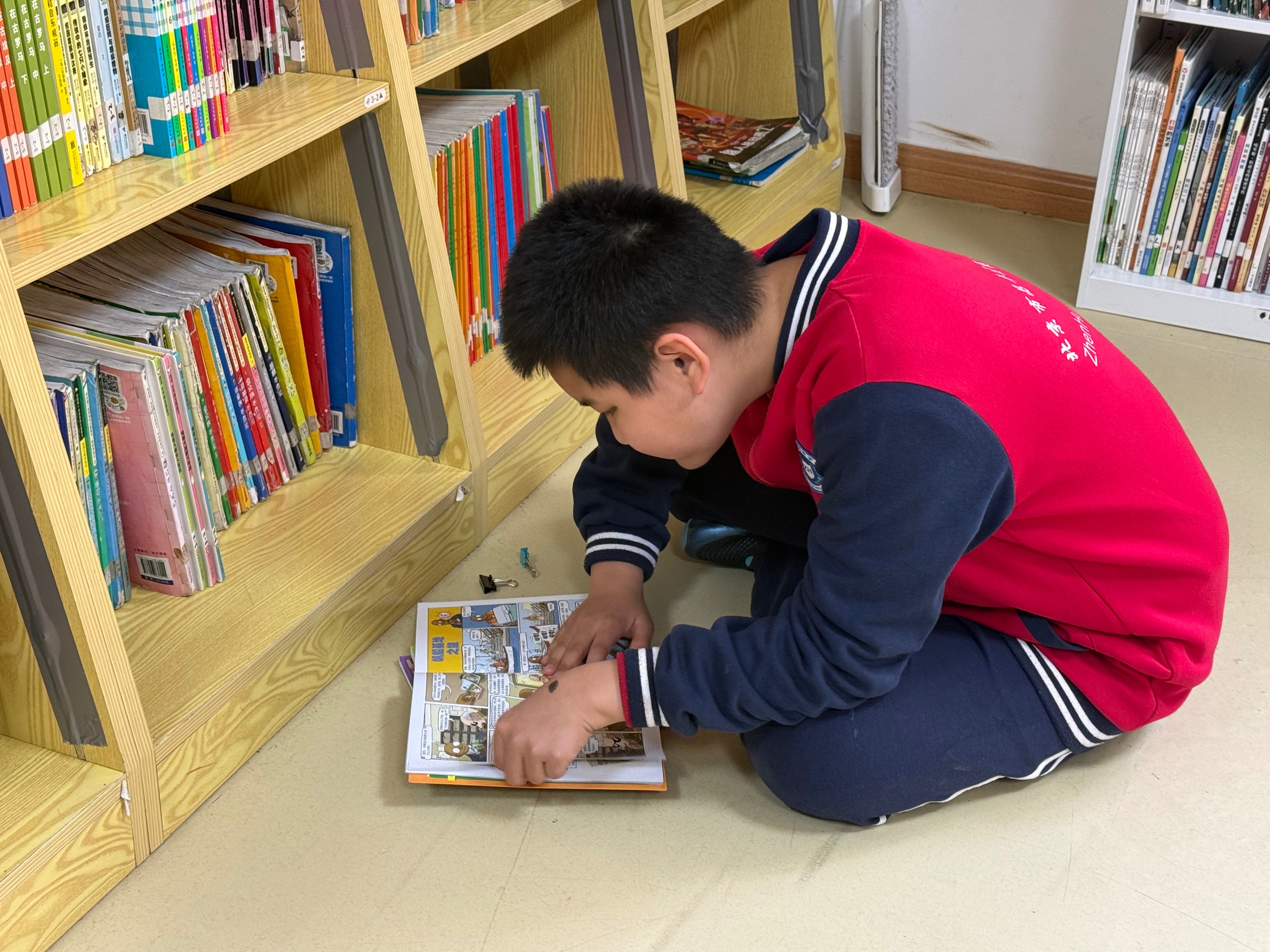 日常值班,借书还书,制作徽章,整理书架,清扫清洁地面。