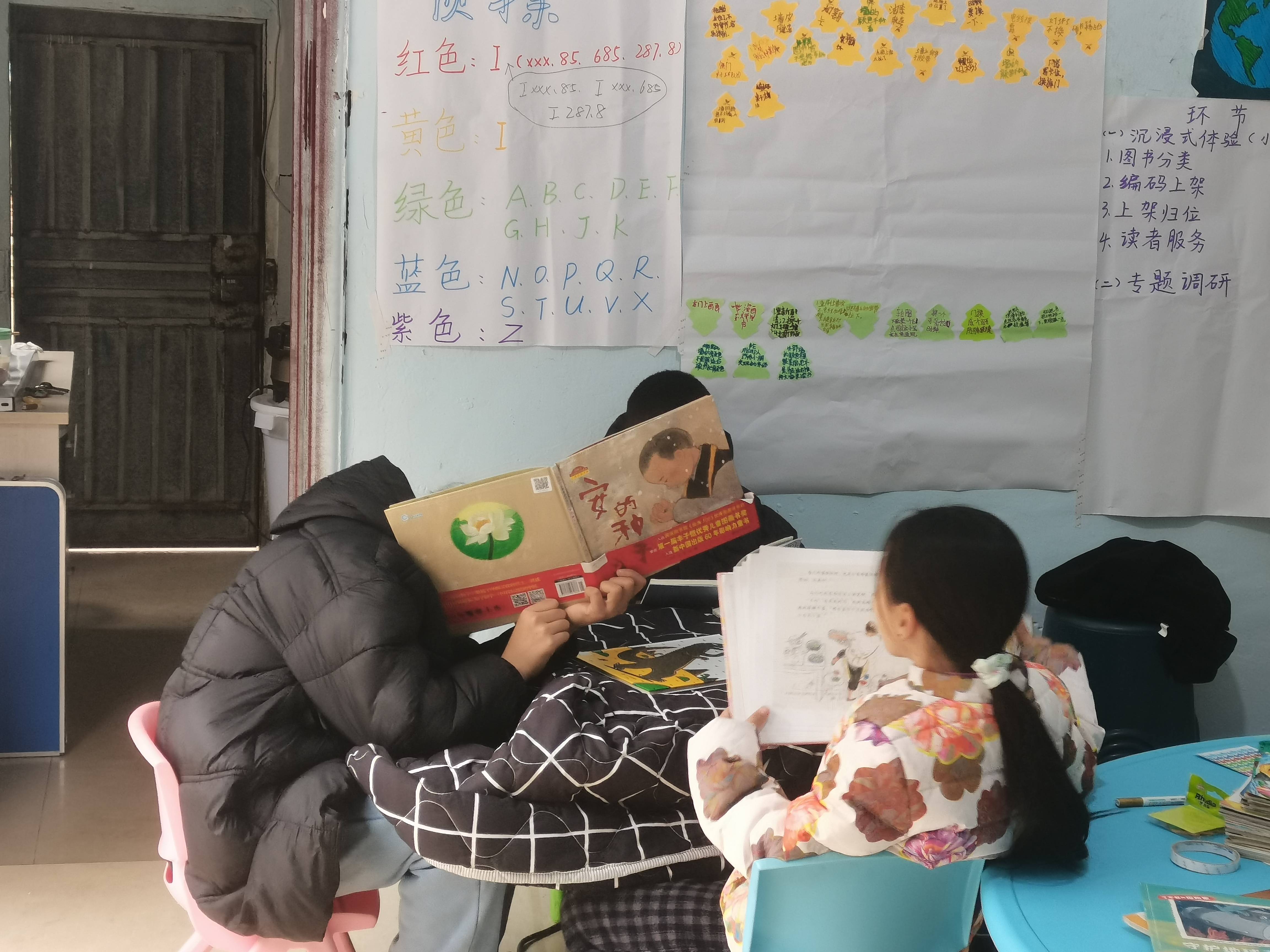 今天开馆后,陆续有几位小朋友到馆阅读。受到低温天气的影响,为保障小朋友阅读时的体感舒适,我们大家围坐到电炉桌旁取暖阅读。小美和小琳到馆后,主动挑选绘本,坐在书架旁开始阅读。随着其他小朋友加入,电炉周边逐渐坐满,大家各自选择喜爱的书籍,安静投入阅读。小渊阅读(《叼狼》)非常专注,没有受周围轻声讨论的影响,沉浸在书本内容中。小美和小琳在共读绘本(《安的种子》)后,主动与社工分享书中精彩内容,并积极表达……查看更多