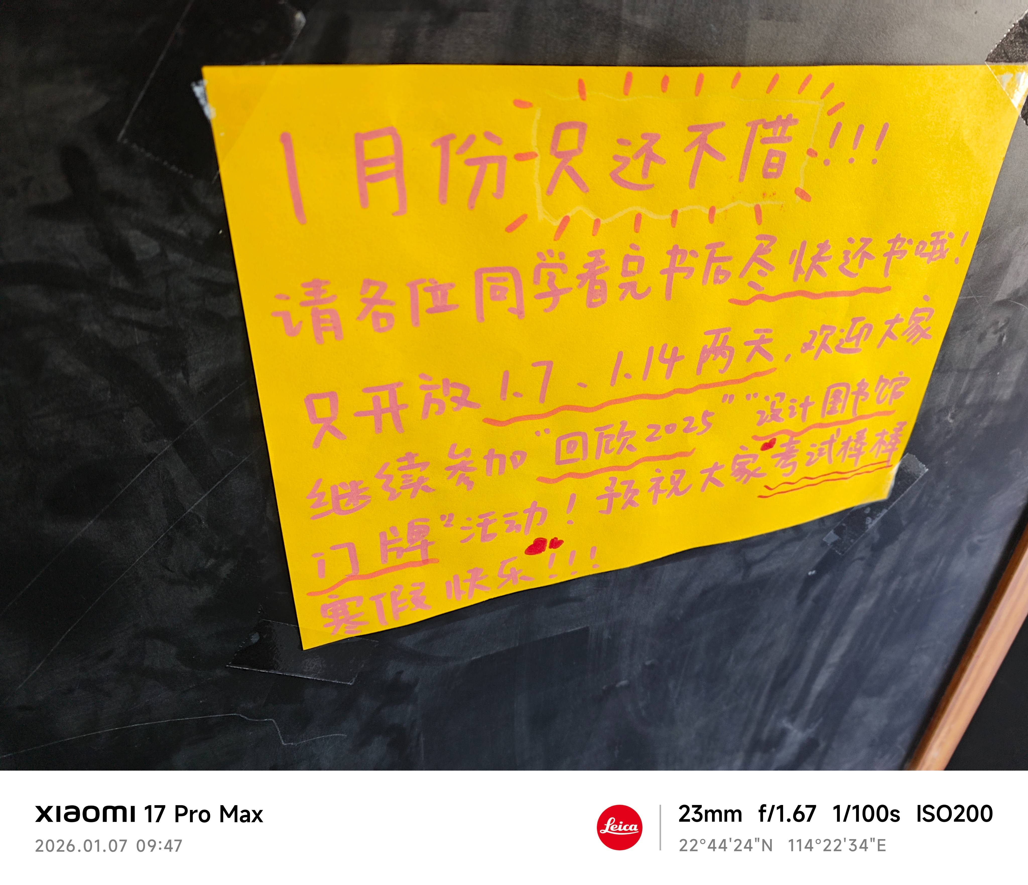 本学期最后一天值班。打印了几张“2026马上读书”,打算下学期初用来奖励阅读量靠前的同学。重头戏还是图书催还工作,到下午3点多眼看还有五十来本书没还上,心一横手抄了个名单,趁着课间去到每个班挨个儿走访。没想到这招出奇好使。因为每走到一个班、跟这个班同学说还有某某同学有书没还时,这个班的同学们便会十分欢乐地回到教室大声喊出ta的名字,然后ta就会略带紧张和心亏的样子,把书给我或者解释有忘带了或者实在……查看更多