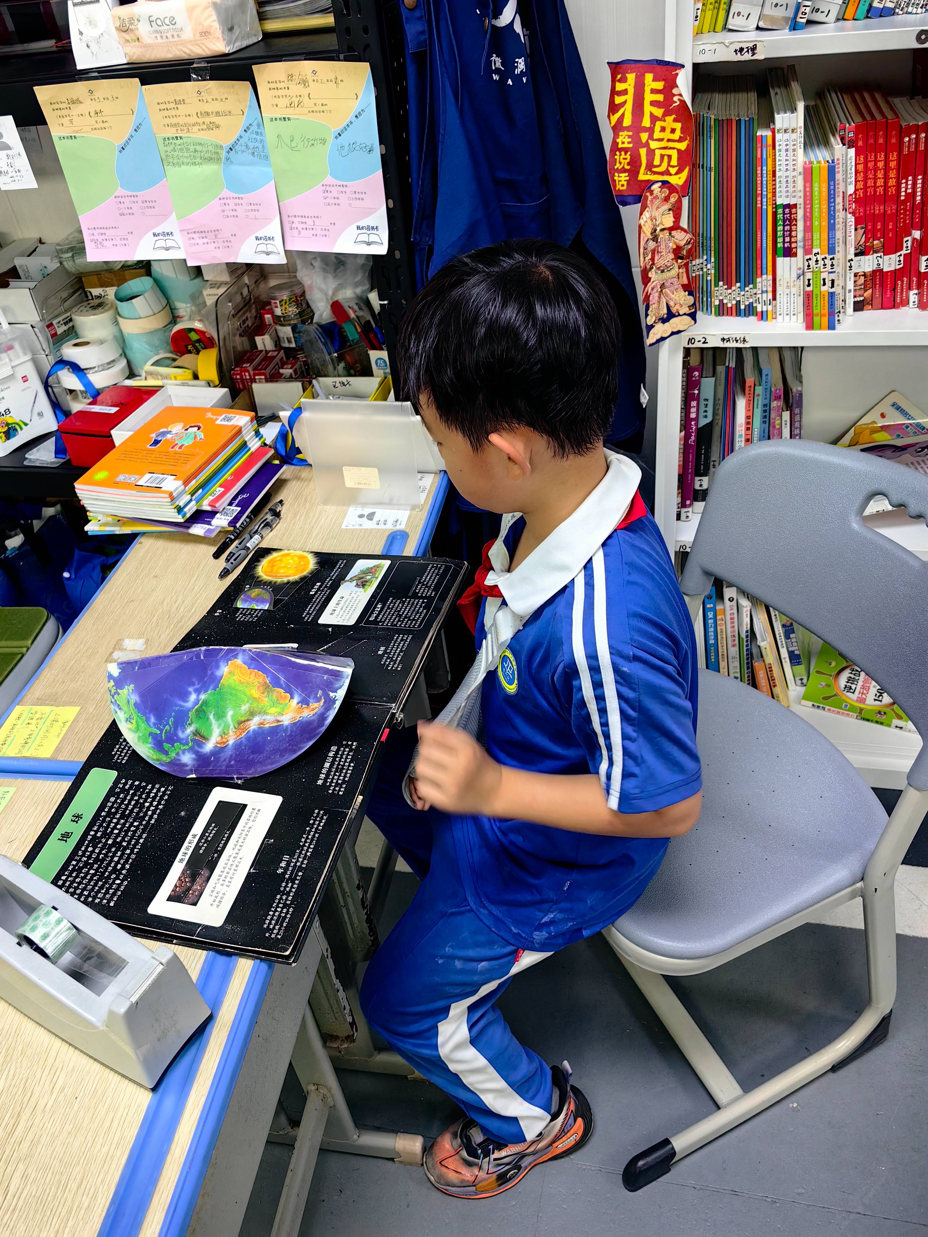 又是忙碌的一天,不过不感觉劳累,因为新书录入的工作有YY带领三位i志愿同学完成,送书还书也有他们帮忙,他们真的太棒了!在处理调入图书时听见彭BX在说话,我头也没抬告诉他我去中心图书馆找过关于京剧的书没找到,他说不要紧,另外有人问中心图书馆在哪,我继续低头回应在福田,他们说这么远。小张同学午饭时间来了,可能他现在不回家吃午饭?我赶紧过去跟他一起走到地球仪旁边,跟正在研究地球仪的学生商量是否可以一起找……查看更多