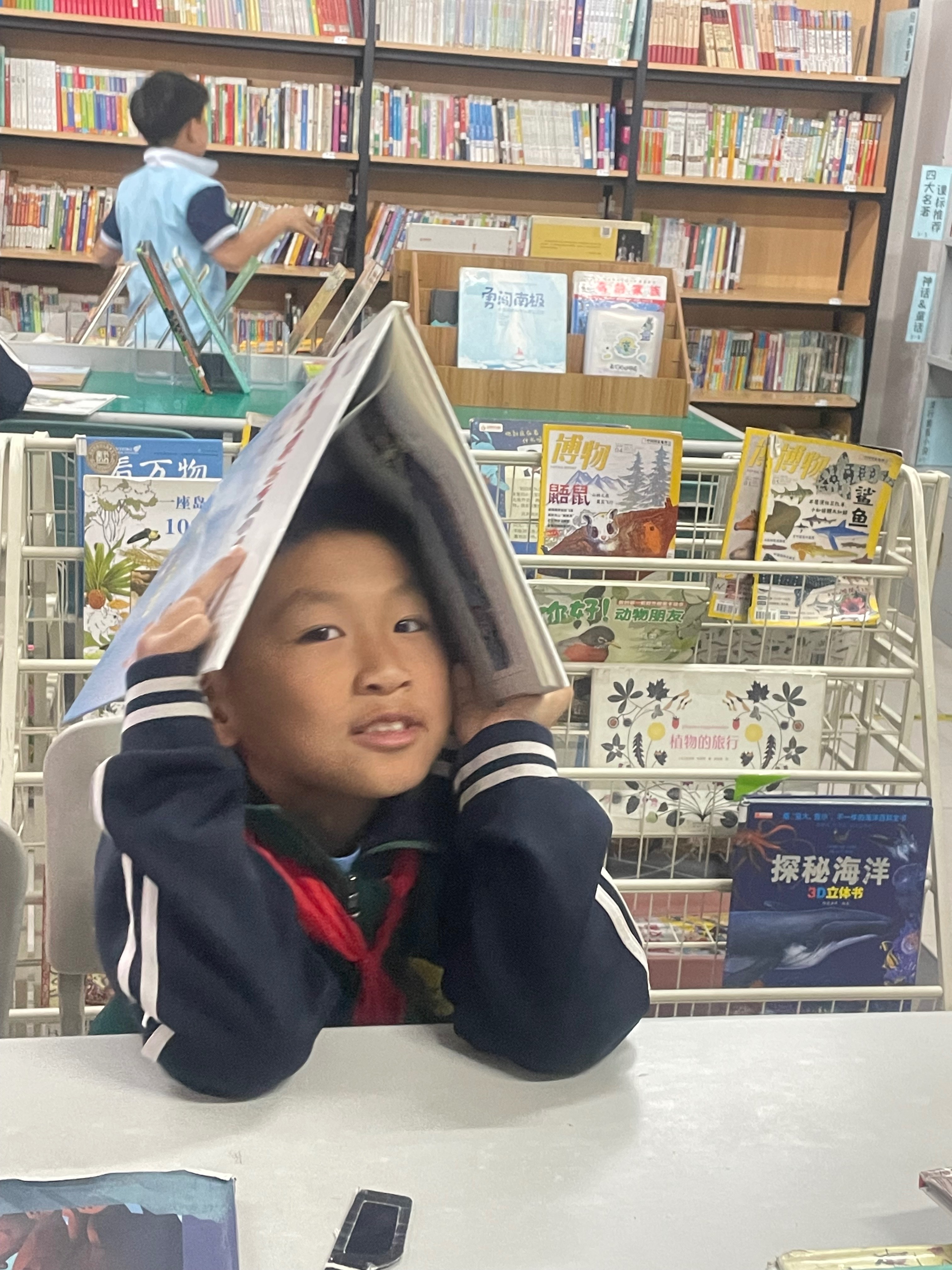 打扫卫生,整理书架,借书还书,工作愉快!