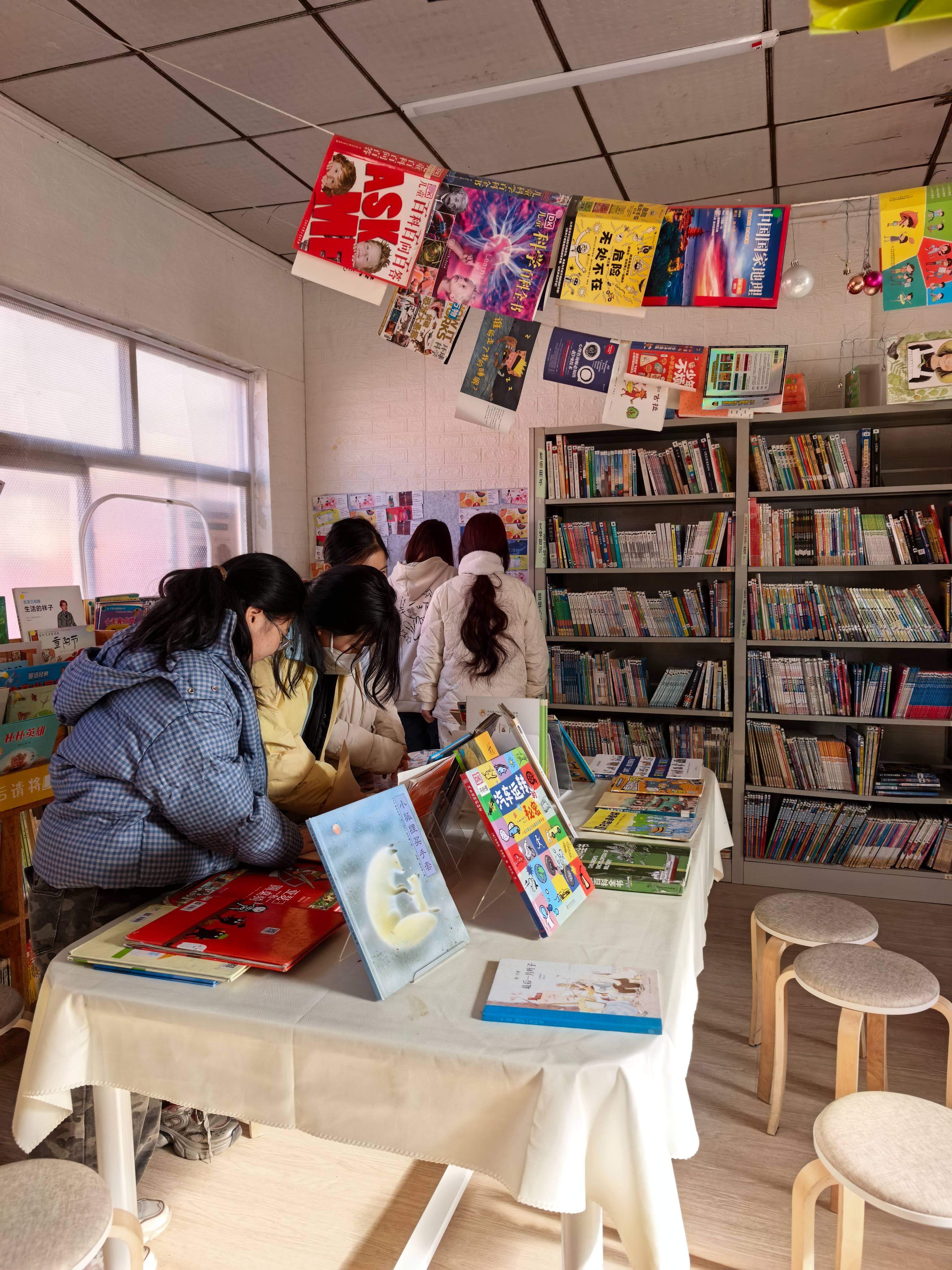 11月3日,今天阳光明媚,天很蓝,课间很多孩子来阅读,他们排着队借书,志愿者为他们一一办理借还书手续。有两个二年级的孩子争抢一本掉书皮的《山海经》,我们把书修补好借给他们。下午1:00~2:00,给一二年级的孩子们读绘本《中国年》,孩子们太兴奋了,有点儿压不住。上课期间有两个孩子发生争执,找班主任来解决了。我们带着他们来到图书馆,叽叽喳喳的,进门后他们被图书吸引,开始看书,孩子们借书的积极性很高。