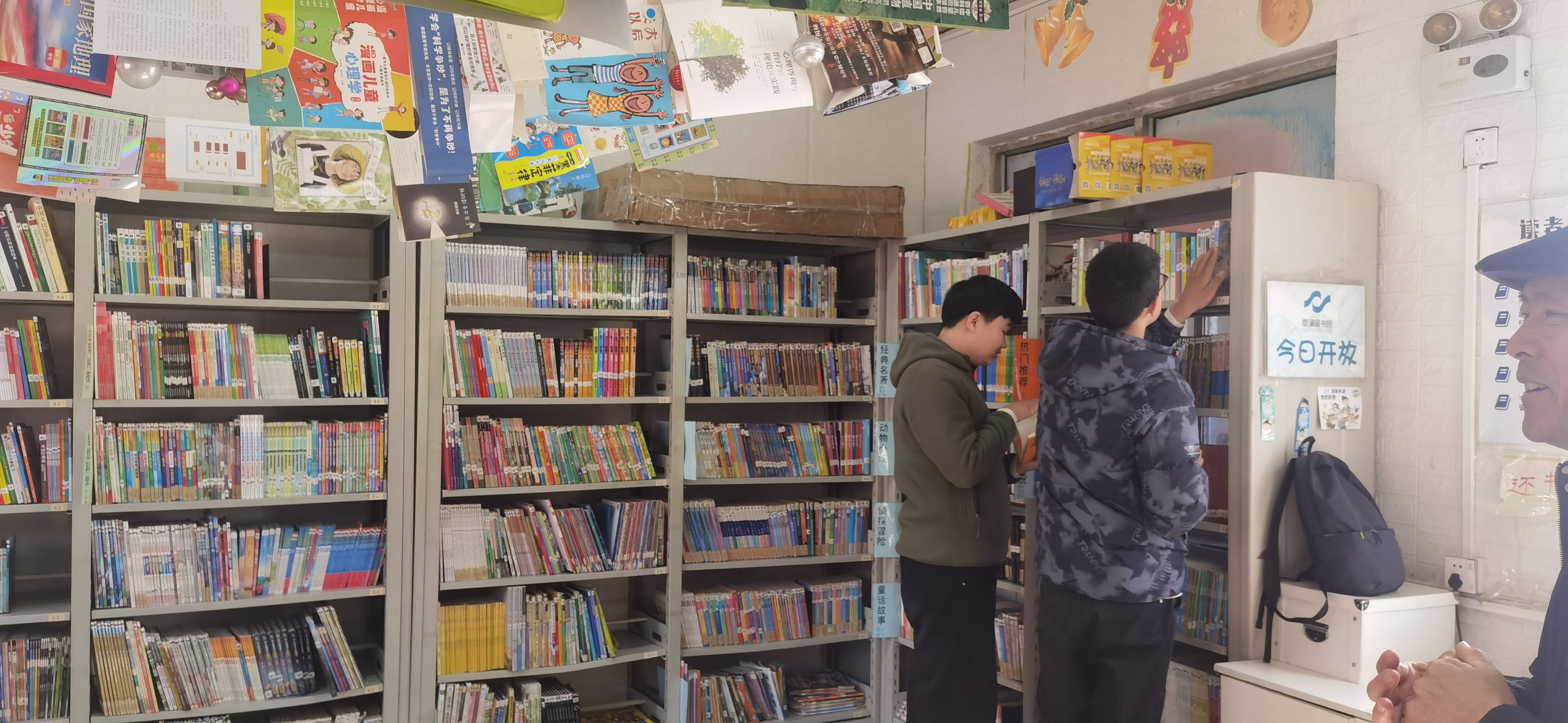 今天本学期最后一次开馆,只还不借。临近期末,来馆的孩子寥寥。收拾整理了书架;清理了25年活动的海报,擦除了活动宣传语等,给26年留下期待的空间。午休时间,还书的也不多,孩子们都知道不能借,全都挤在馆里看书,看的还很认真,讨论的也很热烈,mjh还调侃到:书架上 《猴子警长》可真全!要上课了,几个熟悉的孩子边跑边喊着:老师再见,老师下学期见!莫名戳中泪点,孩子们下学期见!