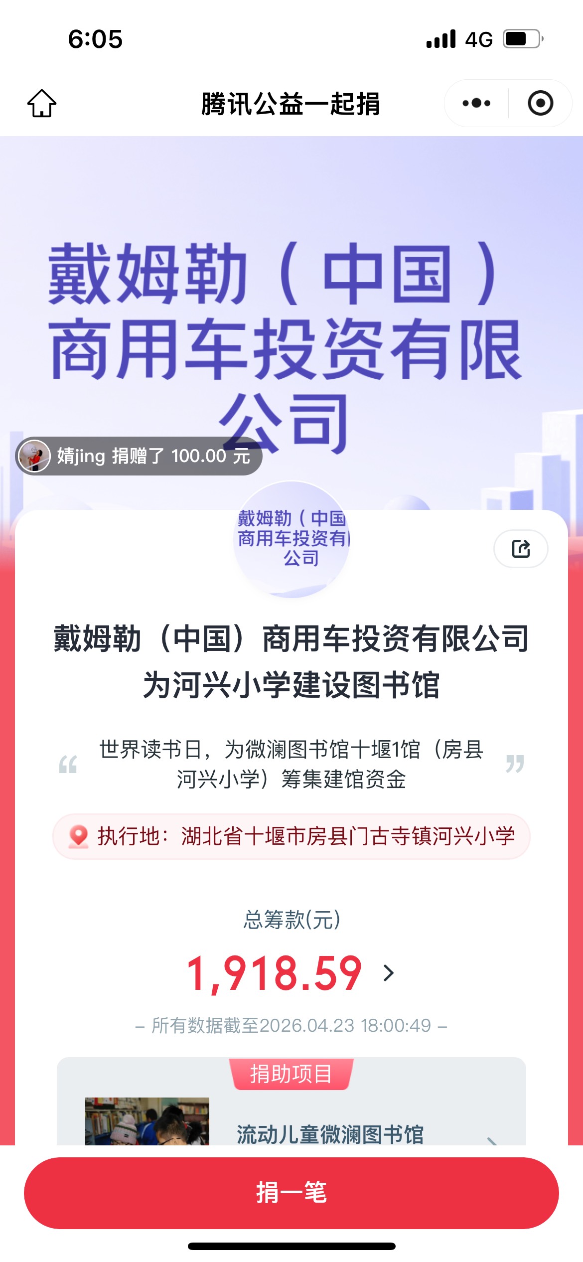 虽是为4.23读书日来的应景活动,但效果不错,98人次/1918.59元,定向用于十堰1馆建馆使用。志愿者就不太可能啦,毕竟都是上班牛马呀~感谢戴姆勒伙伴暖暖老师,全流程细致安排,热情洋溢吆喝员工们今日做(快)好(捐)事(钱)。感谢王旋出摊支持,且销售力爆满,厉害厉害👍因为是外企吧,所以员工都很fashion~对于公益之前都是公司层面直接捐赠,这次个人腾讯公益直接捐,然后立马收到捐赠证书以及微信戴……查看更多