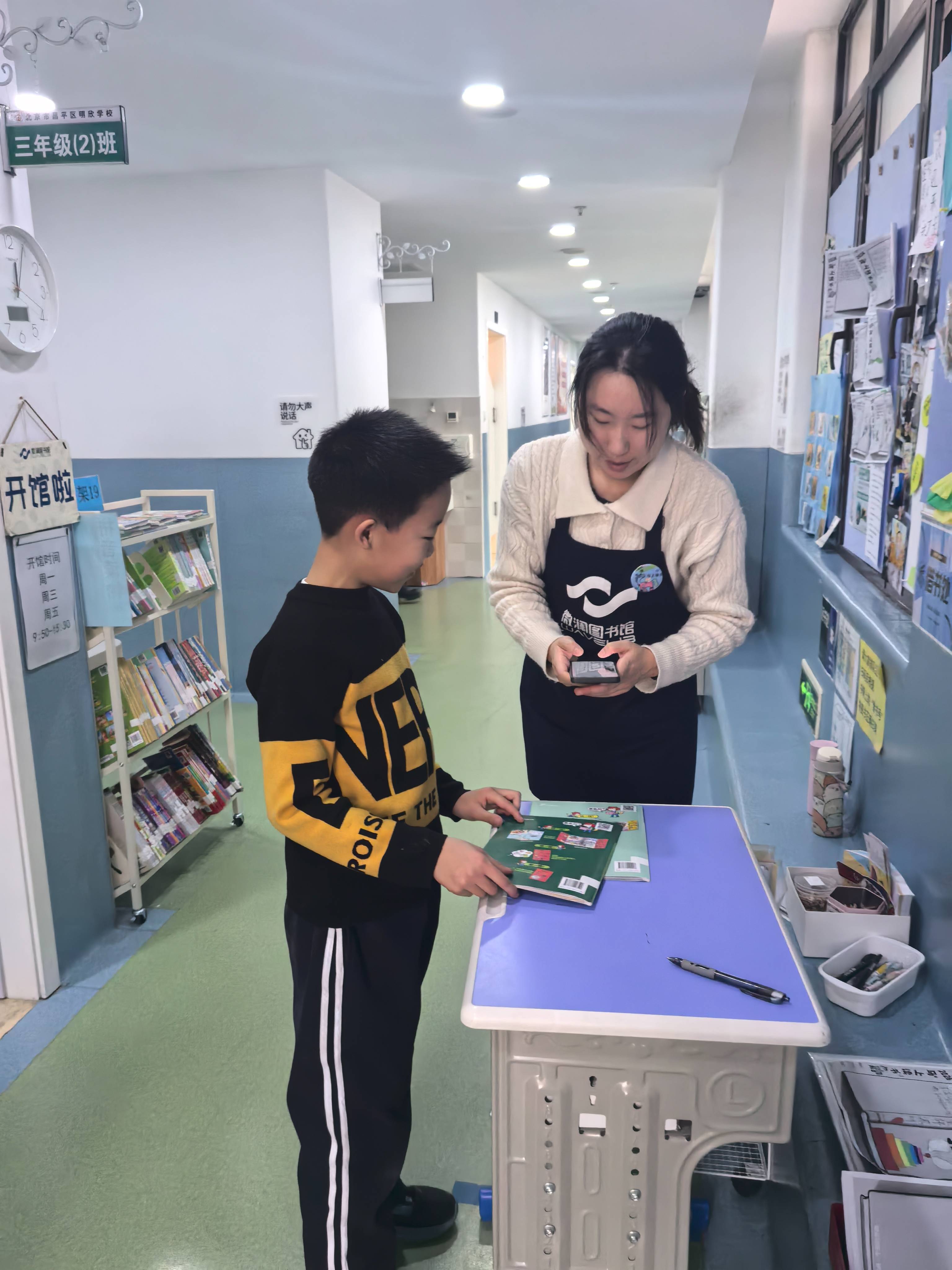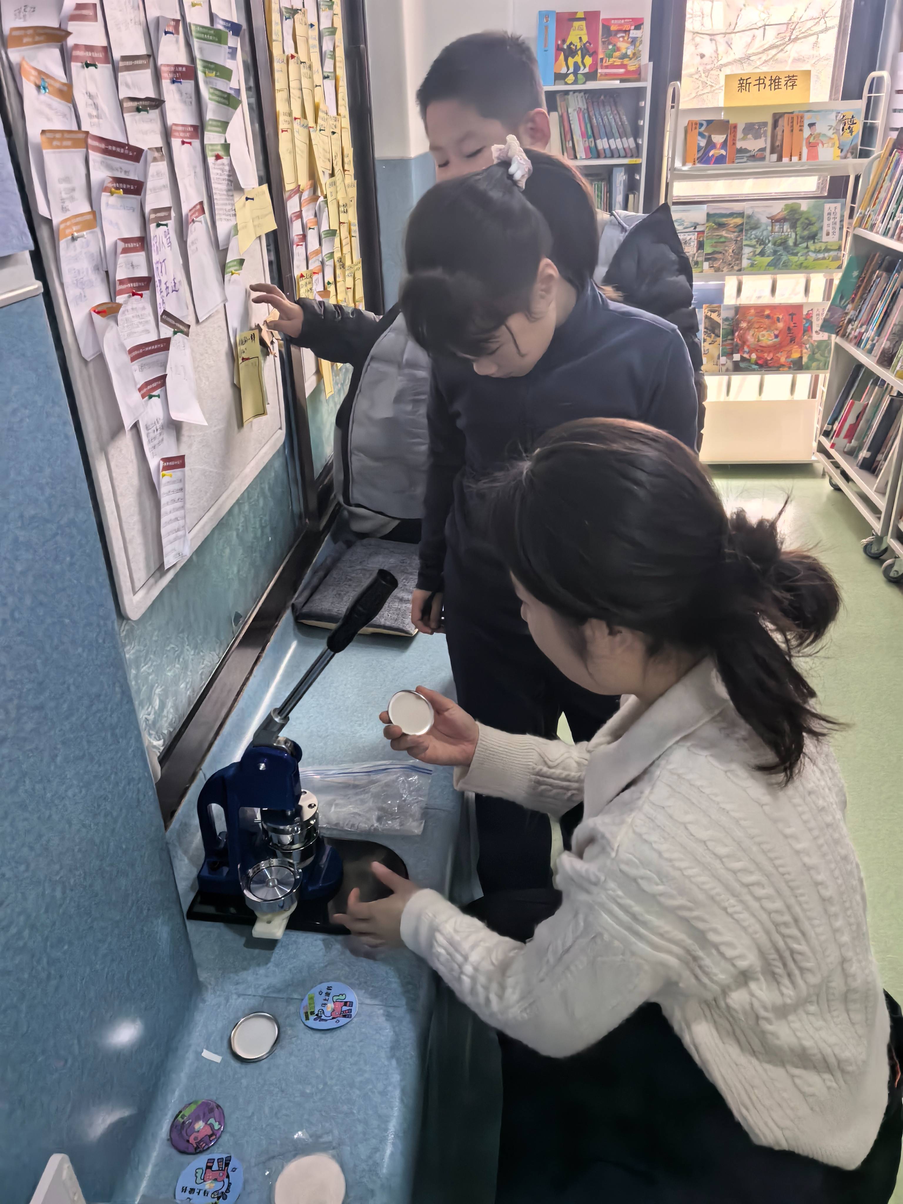 今天的搭档临时有事没来,是袁咏梅老师来替班的,差点就开天窗啦。路上还是有点堵车,刚和袁老师把书架推出摆好就到课间时间了。 除例行的借书、还书、修补书外,我今天主要负责“2026马上读书“活动做吧唧章。上周在35馆已经做过,流程也算熟悉,没想到孩子们比我还熟悉,趴在我边上指挥着要点:“第一个要轻压,第二个要用力压”,还示范着“这样放底盖才是正的”。开始准备的覆盖膜都是有星星……查看更多