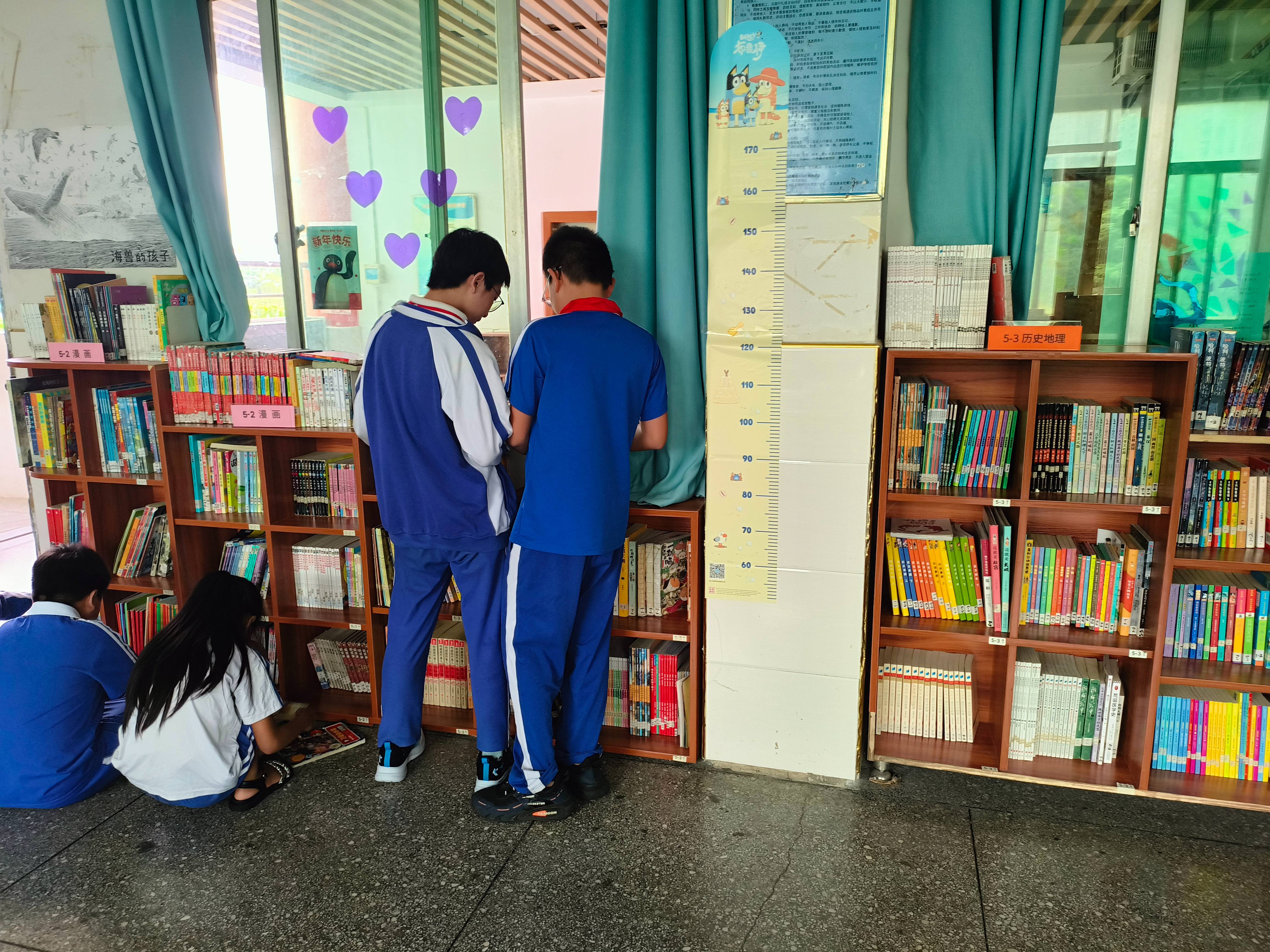 做了一些力所能及的事,多亏保洁大姐的帮助,能够顺利高效地完成借还书的工作。另,补休了8本书。一些感想:初中部的同学很少有来借书,估计就两只手能数过来。小学生们看的书主要是5-2的漫画书,所以很多书都是处于闲置状态,漫画书消耗很大,但很多其他的书,几乎是新的,借阅次数很有限。对此有两点思考:1.漫画书的维护工作。有些新进的漫画书可以一来就提前做好保护措施。因为消耗很大,很容易坏的---参考诗词动物系……查看更多
