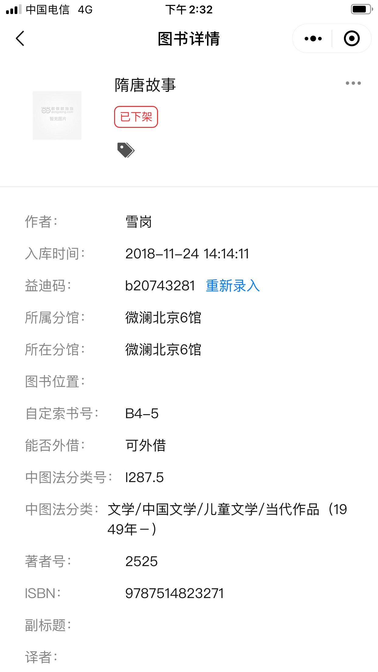 很喜欢历史类读物,《中国历史故事集》是套书,其他都已看完,就差一本《隋唐故事》,馆藏显示下架,找了多次都没找到,希望爱心人士看到,再购买一本,满足孩子愿望啦