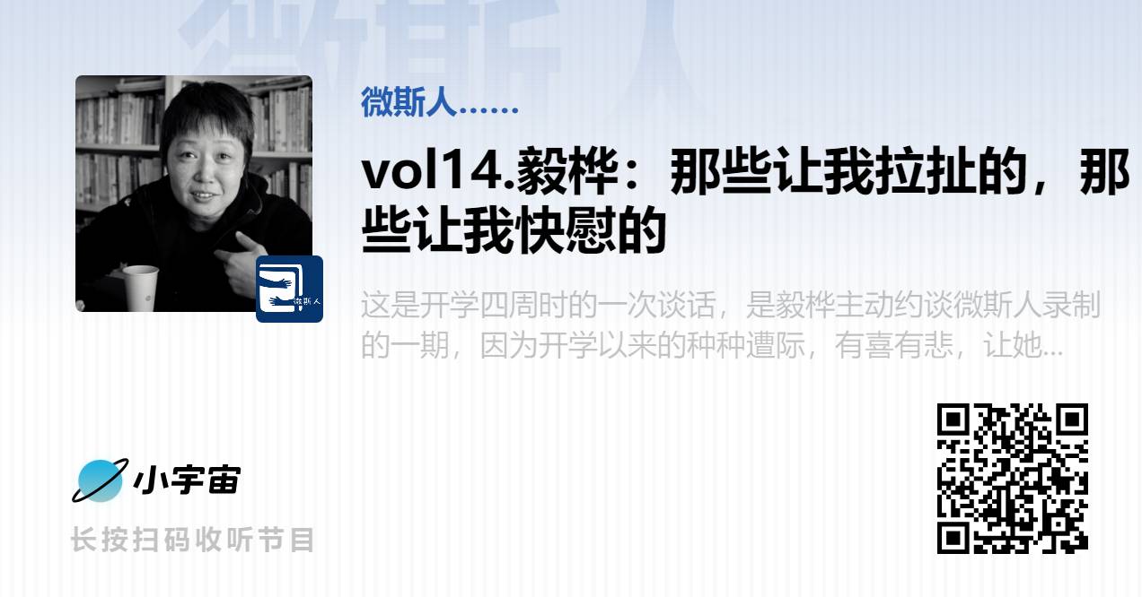 这是开学四周时的一次谈话,是毅桦主动约谈微斯人录制的一期,因为开学以来的种种遭际,有喜有悲,让她很有表达的欲望。