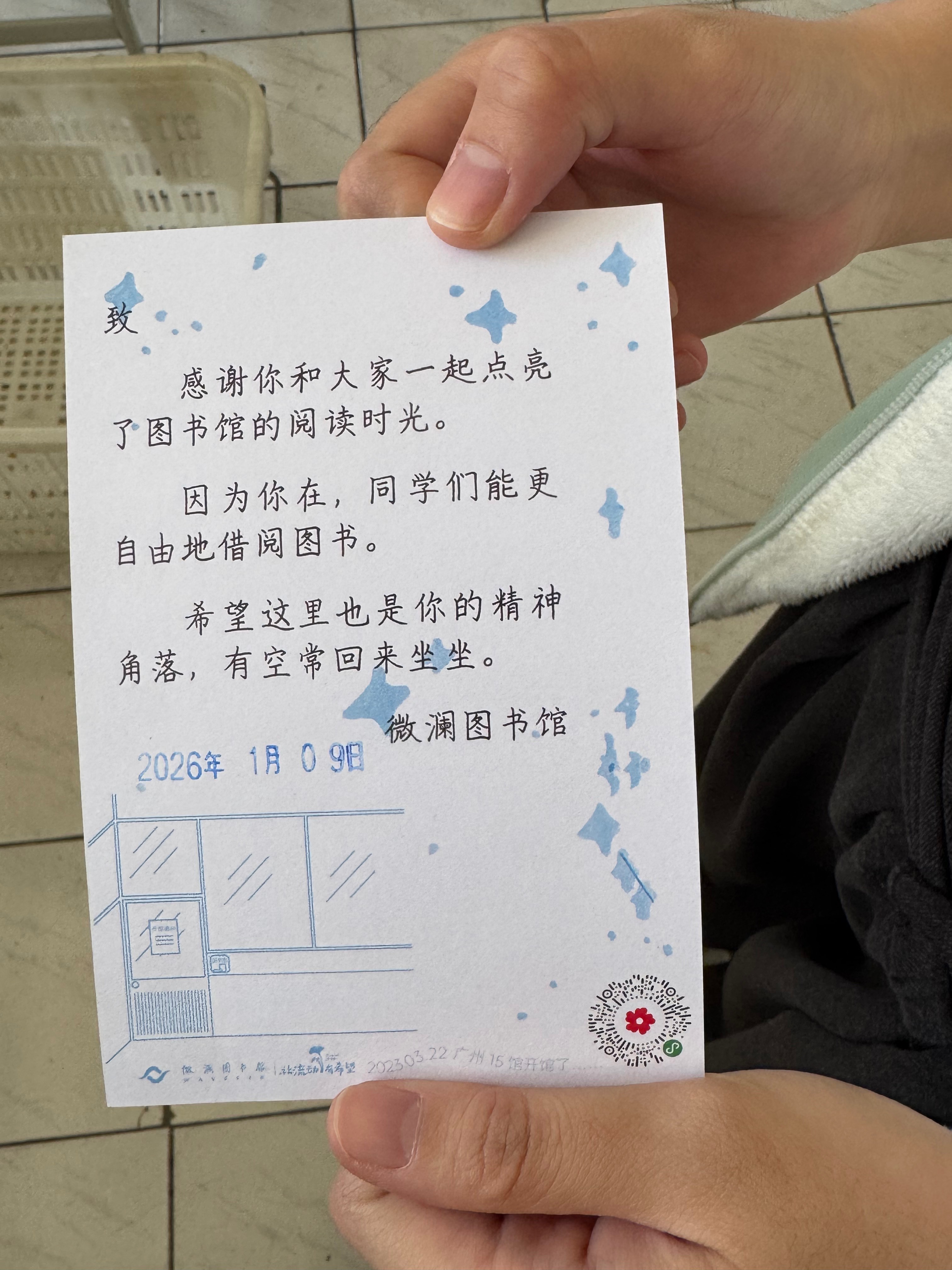 诚挚感谢贾霜晓馆东长久以来的爱心捐赠,让孩子们得以坐拥书香,畅游书海。贵阳2馆(启乐·微澜图书馆)2026年1月9日
