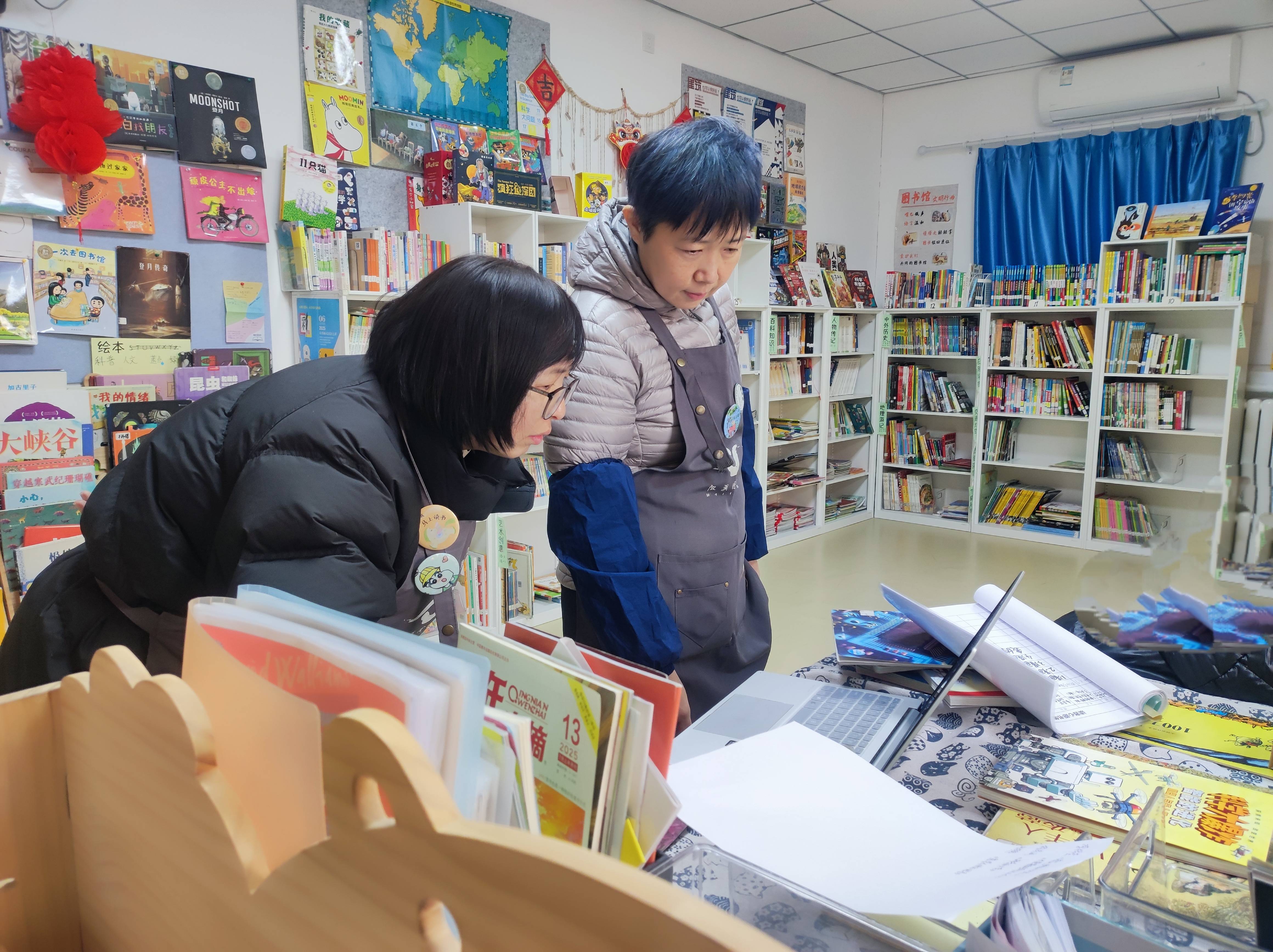 和丽娟按楼层一个班一个班的收书,并一一告诉孩子们,我们要闭馆啦,寒假可......