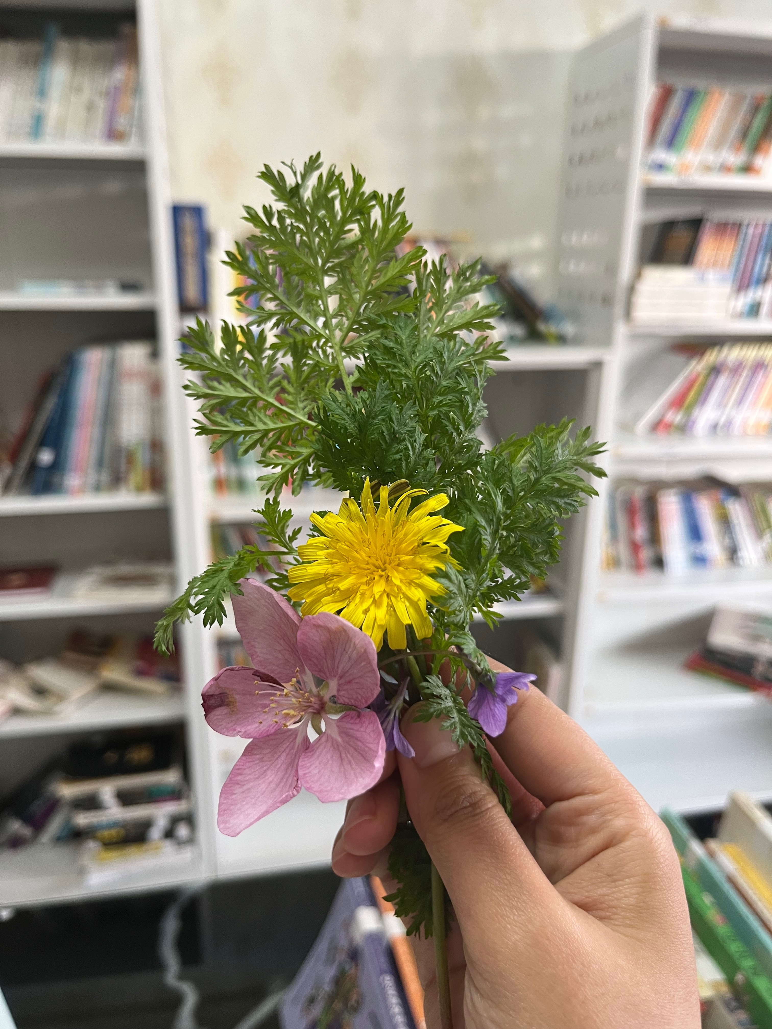 今天和莫名老师、高老师一起值班。有点阴天,馆内温度略低,注意保暖。校内的花......