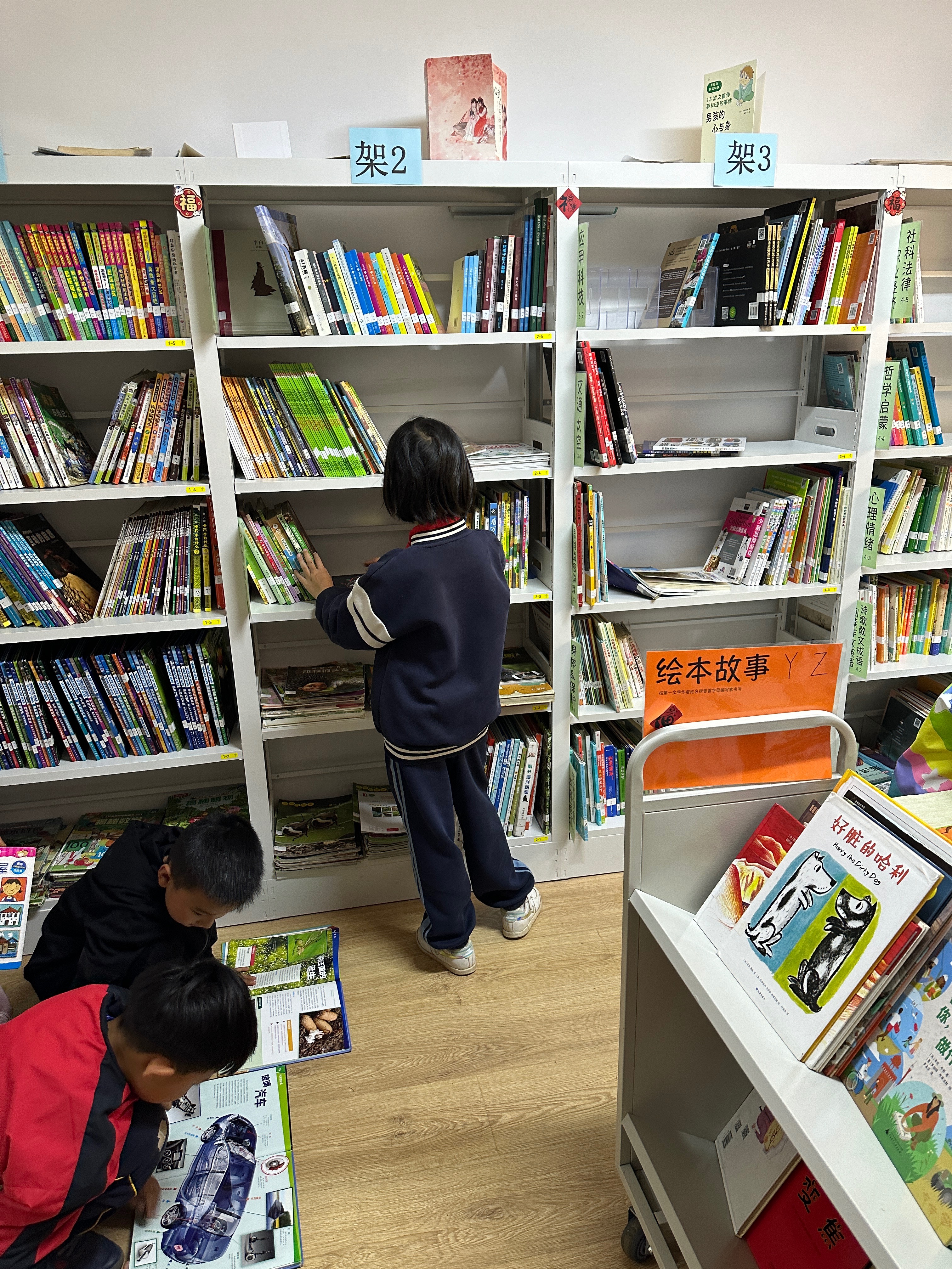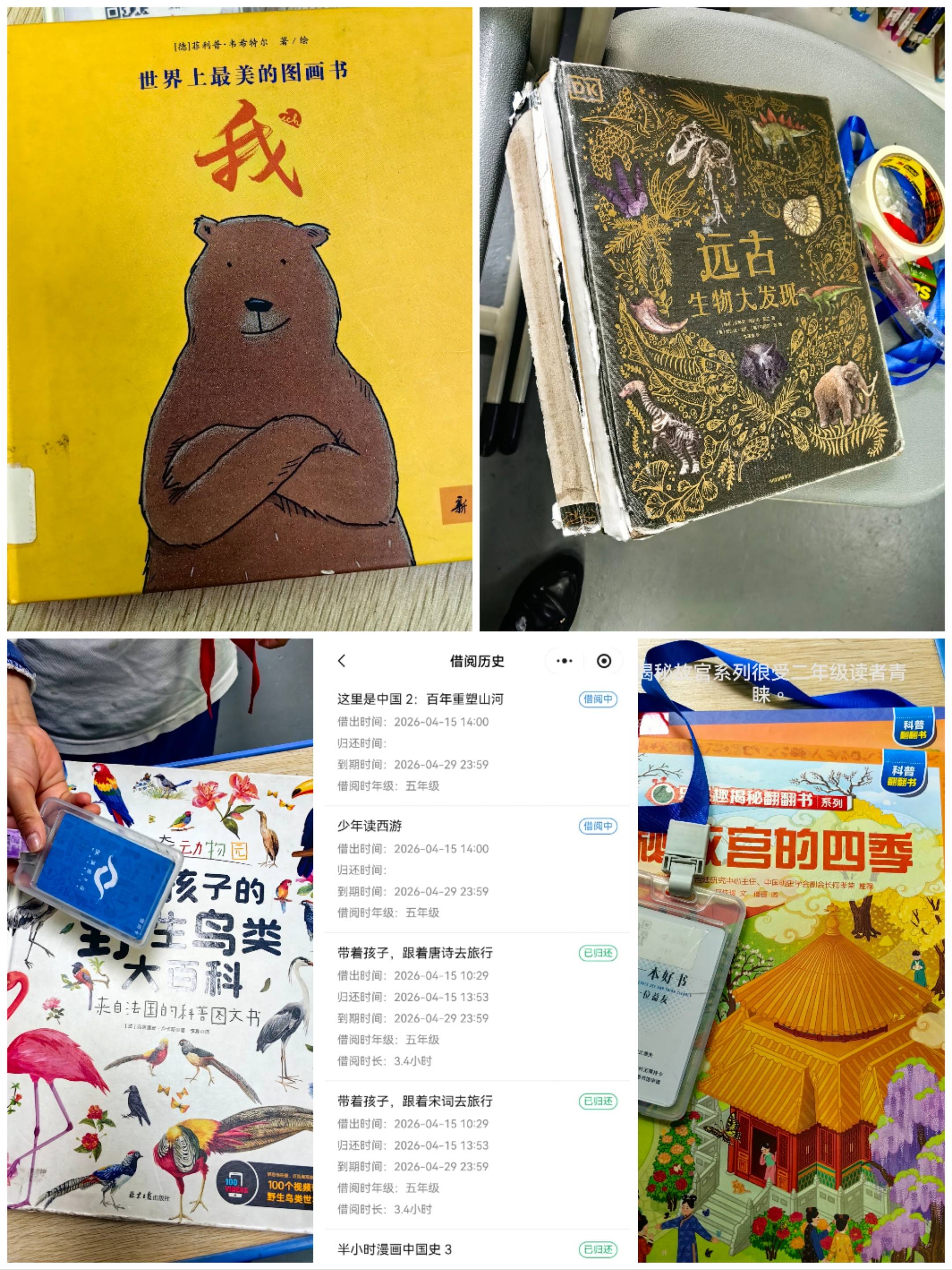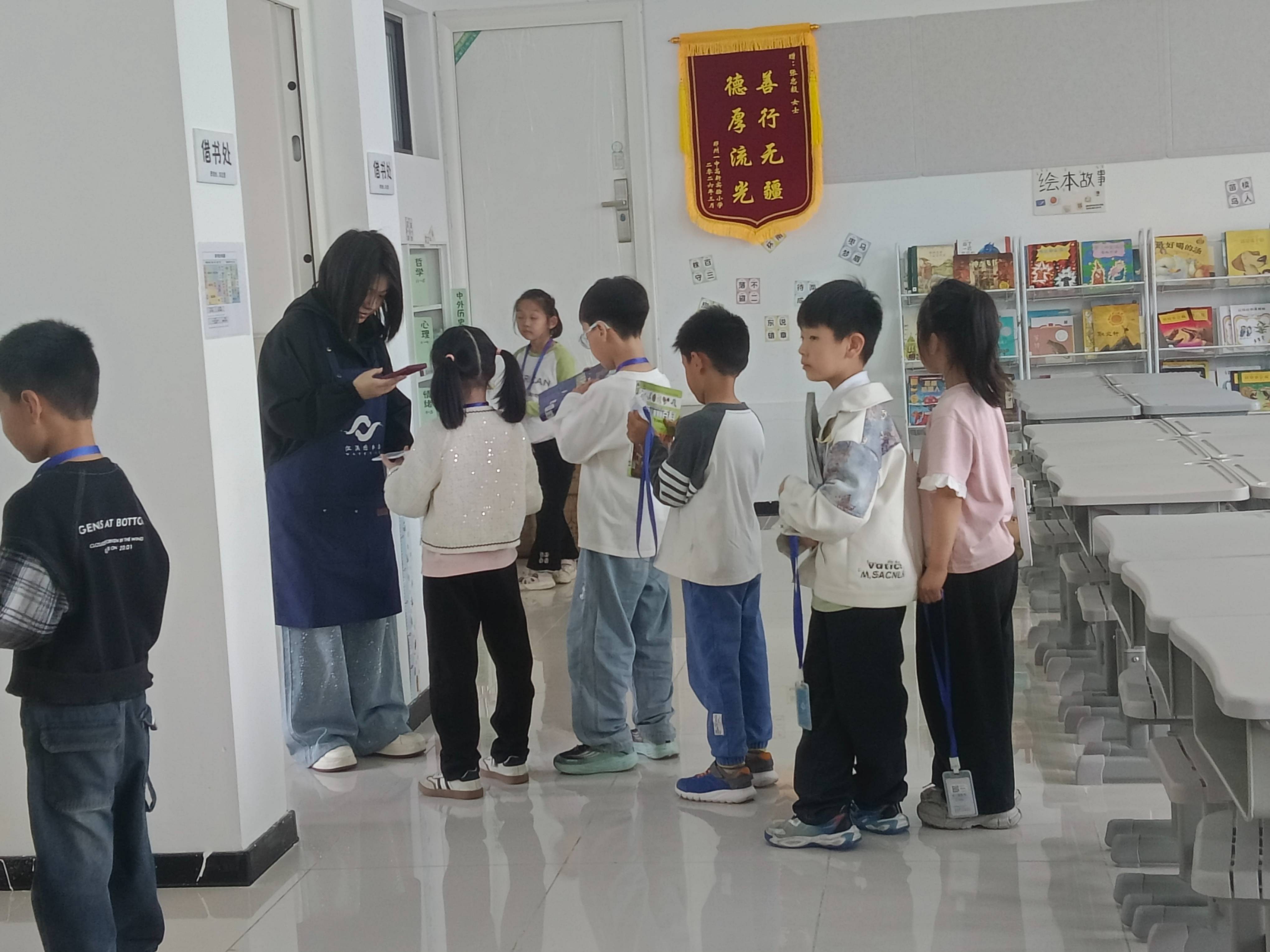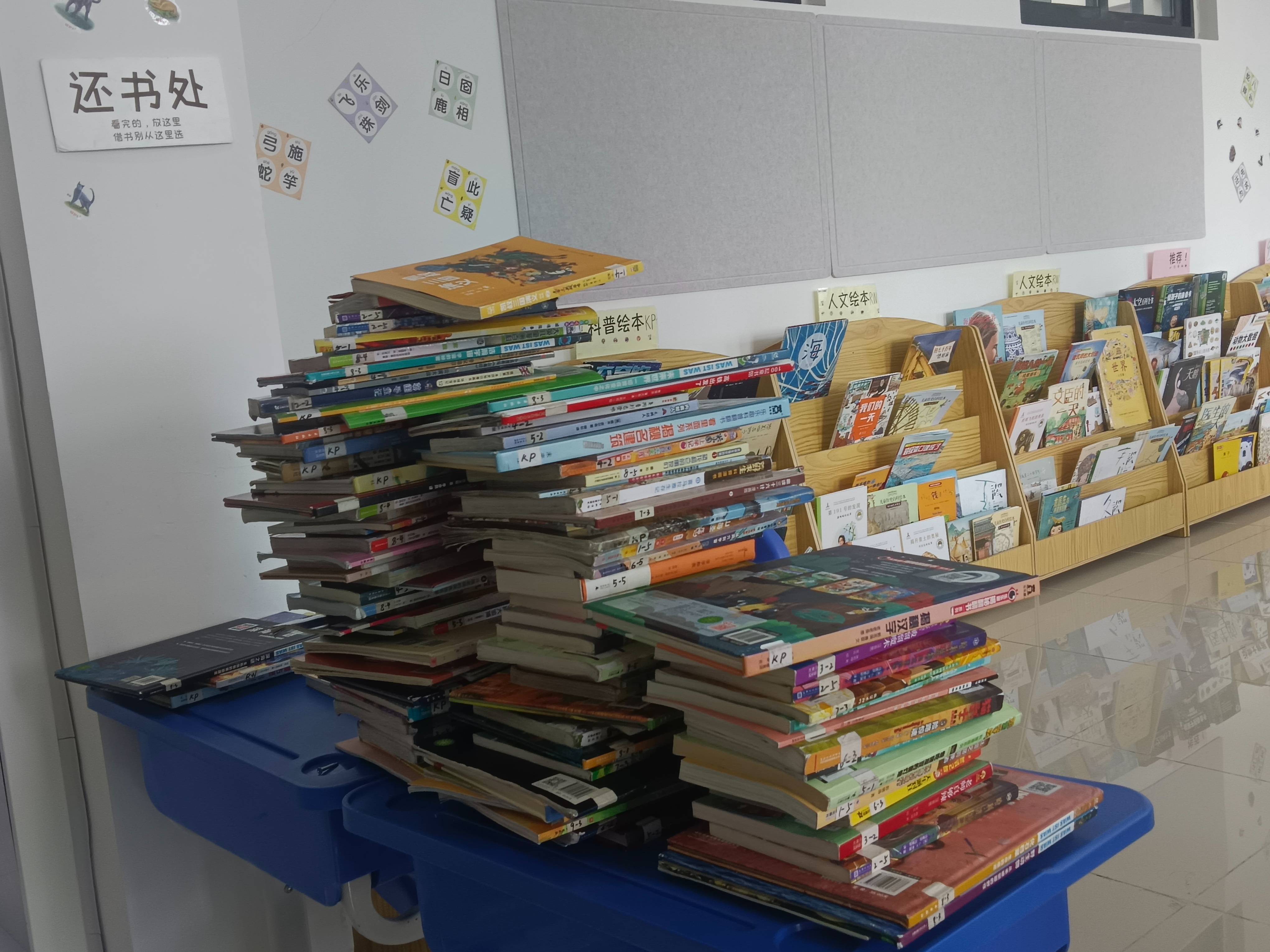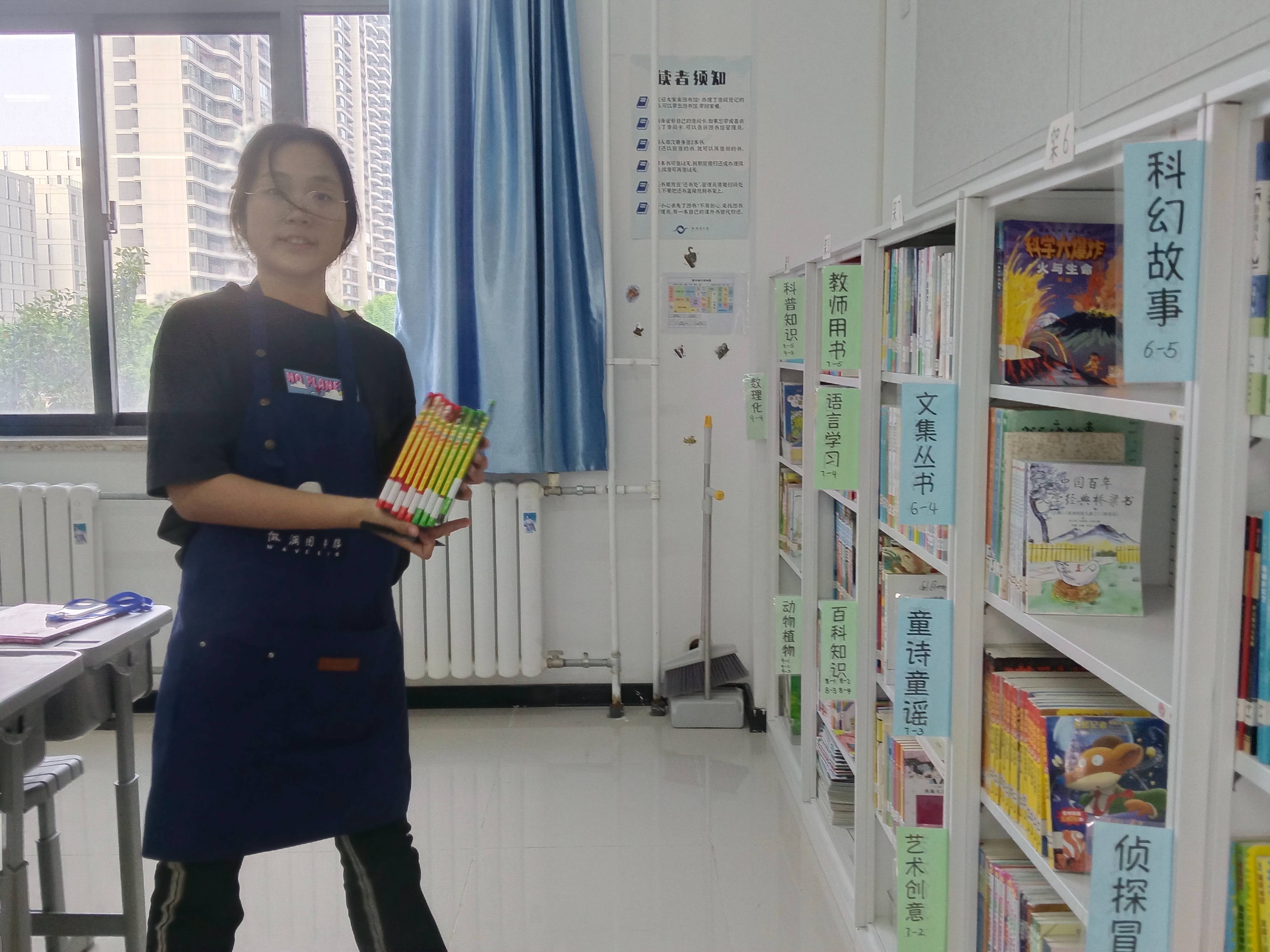 因为之前出现图书被丢在草丛的情况有两位小朋友帮忙带回了图书,所以我给两位同......