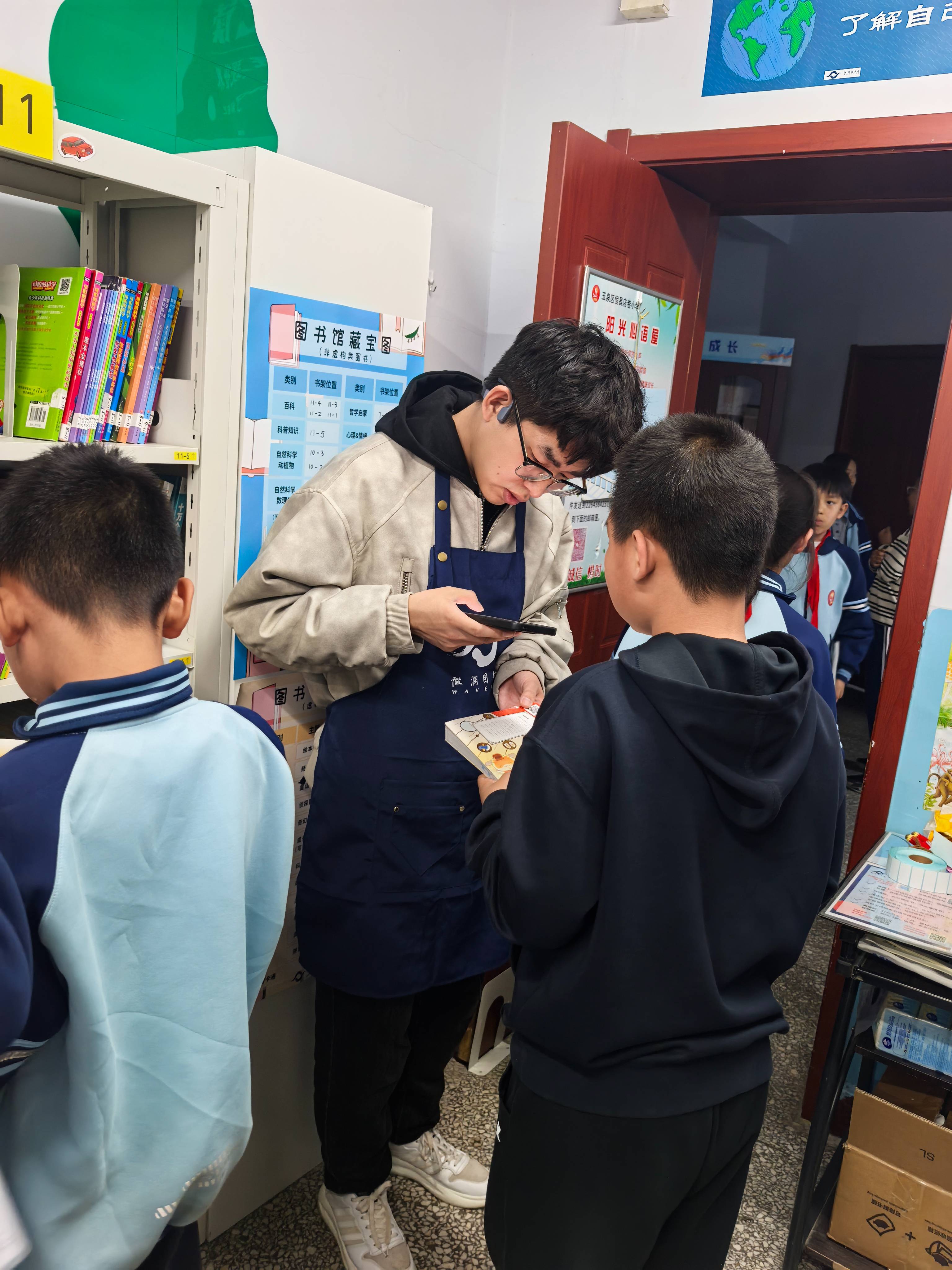 今天跟着老师学习新书录入,期待上架,小朋友们有好多新书可以借阅啦!
